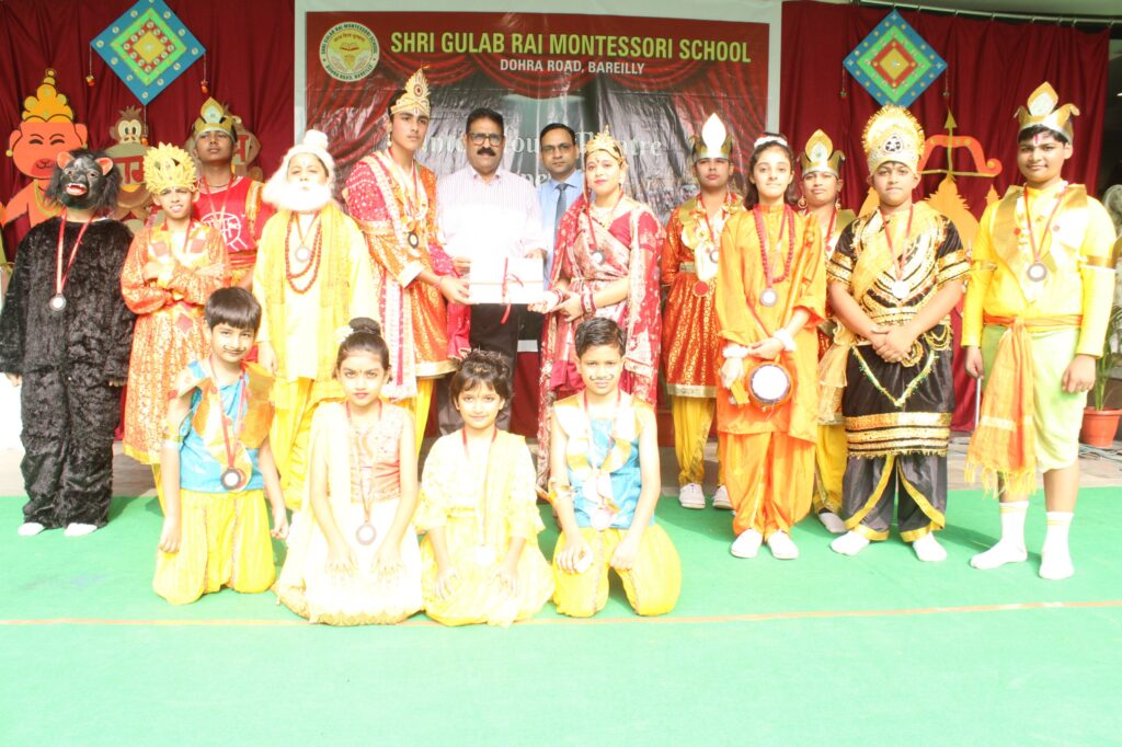 बरेली । श्री गुलाब राय माण्टेसरी स्कूल, डोहरा रोड परिसर में अंतरसदनीय नाट्यमंचन प्रतियोगिता का आयोजन किया गया। विद्यालय के प्रबंधक राजेश अग्रवाल जौली व प्रधानाचार्य शील सक्सेना ने दीप प्रज्वलित कर कार्यक्रम का उद्घाटन किया। चारों सदनों के लिए क्रमशः बालकाण्ड, अयोध्या काण्ड, सुंदरकांड व उत्तरकाण्ड की विषयवस्तु को लेकर अभिनय करना था।
