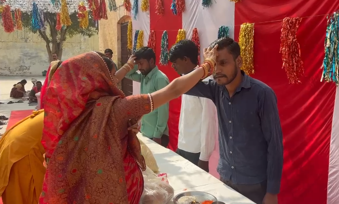 बहन ने भाई के माथे पर तिलक कर मांगी दीर्घायु की दुआ, उपहार पाकर खिले चेहरे