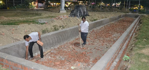 कानपुर। स्मार्ट सिटी लिमिटेड (केएससीएल) की तरफ से छह करोड़ रुपये खर्च कर विकसित किए गए शास्त्रीनगर बड़ा सेंट्रल पार्क के खेल मैदान को खोद डाला। यहां छठ पूजा क लिए दो कृत्रिम तालाब बनाए जा रहे हैं। जबकि यहां वर्षों से छठ पूजा की जा रही है। मैदान खोदने से क्रिकेट प्रेमियों में रोष है। उधर, कृत्रिम तालाब का काम भी अधूरा है। शास्त्रीनगर सेंट्रल पार्क के सुंदरीकरण के साथ ही इसमें फुटसल ग्राउंड और छह महीने पहले क्रिकेट ग्राउंड भी विकसित किया गया। क्रिकेट के मैदान में दिन-रात मैच खेलने के लिए फ्लड लाइटें लगवाई गईं। ओपन जिम की तरफ प्रैक्टिस पिचें भी बनवाई गई थीं, पर इस मैदान में कोई भी प्रतियोगिता नहीं हो पाई। कृत्रिम तालाबों के निर्माण के लिए नगर निगम ने 25 दिन पहले टेंडर निकाले थे। इसके बाद क्रिकेट ग्राउंड में करीब 50-50 मीटर लंबाई और करीब छह मीटर चौड़ाई में खोदाई करने के साथ ही मिट्टी के ढेर लगाने से प्रैक्टिस पिचें भी खराब हो गईं। आसपास की जमीन भी ऊबड़-खाबड़ हो गई। कृत्रिम तालाबों का ईंटों से निर्माण कराया जा रहा है। तालाब में जाने के लिए तीन सीढि़यां भी बनाई गई हैं। इनमें फर्श बनाने के लिए बीच में गिट्टी भी डाल दी गई है। पर, अभी तक फर्श नहीं बन पाई है। प्लास्टर भी नहीं हुआ है।
