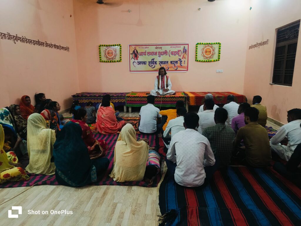 बिल्सी! यज्ञ तीर्थ गुधनी में स्थित प्रज्ञा यक्ष मंदिर में आर्य समाज का साप्ताहिक सत्संग आयोजित किया गया । सामवेद के मंत्रों से विशेष आहुतियां दी गई , तत्पश्चात सुप्रसिद्ध वैदिक विद्वान आचार्य संजीव रूप ने कहा *संसार में जो भी विकास है वह ज्ञान और विज्ञान का है ! व्यक्ति जैसे-जैसे ज्ञानवन होता है वैसे ही वैसे व्यक्ति के जीवन में परिवार में समाज में राष्ट्र में और विश्व में सुख बढ़ता है किंतु यह भी देखा गया है कि बहुत पढ़े-लिखे लोग जहां बहुत विकास कर सकते हैं वहीं वे समाज और राष्ट्र का विनाश भी कर सकते हैं!