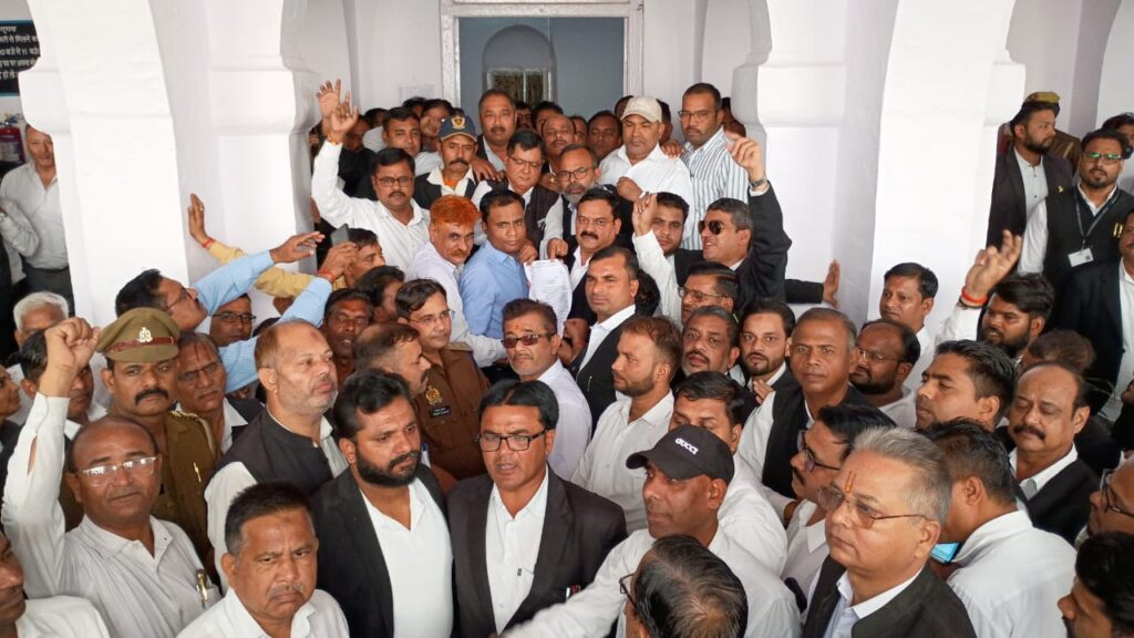 बरेली। उत्तर प्रदेश बार काउंसिल के आवाहन पर सोमवार को बरेली बार एसोसिएशन ने गाजियाबाद की घटना का विरोध करते हुए न्यायिक कार्य से अपने आप को मुक्त रखा और जिलाधिकारी को ज्ञापन दिया बरेली बार एसोसिएशन के अध्यक्ष मनोज कुमार हरित एडवोकेट और वीरेंद्र प्रसाद ध्यानी एडवोकेट के नेतृत्व में महामहिम राज्यपाल को संबोधित जिलाधिकारी को ज्ञापन दिया इस अवसर पर उत्तर प्रदेश बार कौंसिल के आह्वाहन पर बरेली के अध्यक्ष मनोज कुमार हरित ने बताया की 29 तारीख को गाजियाबाद में जिला जज द्वारा अमर्यादित कार्य किया गया और केस में सुनवाई के दौरान वकीलों के प्रति अपशब्दों का प्रयोग करते हुए पुलिस द्वारा लाठीचार्ज कराया गया और निहत्ते वकीलों पर बर्बरता पूर्ण हमला किया गया जिसका बरेली बार एसोसिएशन घोर विरोध करता है जिला जज के चेंबर में वकीलों पर पुलिस द्वारा बर्बरता पूर्ण लाठी चार्ज किया गया हम यह मांग करते हैं कि दोषी पुरस्कारों के खिलाफ एफआईआर दर्ज कर कड़ी कार्रवाई की जाए और घायल वकीलों को 5 लाख का मुआवजा दिया जाए, इस संबंध में इलाहाबाद उच्च न्यायालय में रिट दायरकी गई है। ज्ञापन के दौरान कैलाश चंद्र गुप्ता , शेर सिंह गंगवार , अनुपम अग्रवाल , रोहित कुमार यादव , अंगन सिंह , जयपाल सिंह आदि मौजूद रहे।