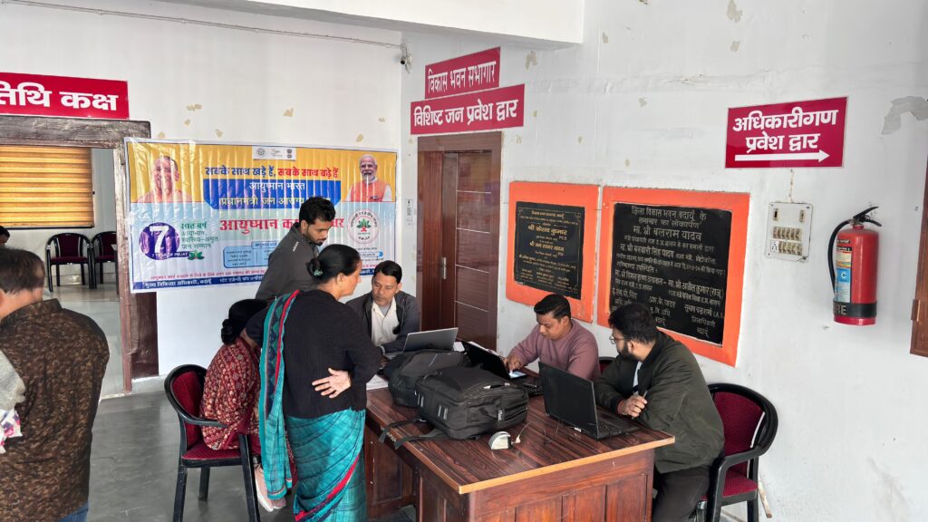 बदायूँ। उत्तर प्रदेश राज्य की पंडित दीनदयाल उपाध्याय राज्य कर्मचारी कैशलेस चिकित्सा योजना अंतर्गत उत्तर प्रदेश राज्य के समस्त सरकारी सेवकों, सेवानिवृत्ति सरकारी सेवकों एवं उनके आश्रितों को हेल्थ कार्ड के उपयोग से कैशलेस चिकित्सा का लाभ देने के लिए विकास भवन में हेल्थ कार्ड शिविर का आयोजन किया गया। जिसमें 10 सरकारी सेवकों व सेवानिवृत्त सेवकों ने आवेदन किया तथा 15 हेल्थ कार्ड इस अवसर पर बनाए गए। मुख्य विकास अधिकारी ने बताया कि विकास भवन में 20 नवंबर से 22 नवंबर तक तीन दिवसीय हेल्थ कार्ड बनाने हेतु कैंप का आयोजन किया जा रहा है। इस हेल्थ कार्ड कैंप का समस्त सरकारी सेवक, सेवानिवृत्त सरकारी सेवक व उनके आश्रित इसका लाभ ले सकते हैं। उन्होंने बताया कि इस शिविर में 70 वर्ष से आयु की अधिक के बुजुर्ग भी अपना हेल्थ कार्ड बनवा सकते हैं। शिविर आगामी 21 व 22 नवंबर तक संचालित रहेगा तथा शिविर का समय पूर्वाह्न 11:00 से 4:00 तक रहेगा।