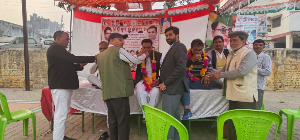 इस्लामनगर। प्राथमिक स्वास्थ्य केंद्र की मांग को लेकर चल रहे क्रमिक अनशन पर आज जिला कांग्रेस अध्यक्ष ओमकार सिंह के साथ नगर कांग्रेस कमेटी के अध्यक्ष यूनिस सकलैनी और जिला कांग्रेस के सचिव रफल सिंह यादव बैठे।लोकसभा के पूर्व प्रत्याशी समाजसेवी कैलाश मिश्रा भारती ने एवं कांग्रेस सेवा दल के जिला अध्यक्ष उमेंद्र शखंधार ने तीनों क्रमिक अनशनकारीयो को जूस पिलाकर सांय 5:00 बजे आज क्रमिक अनशन तुड़वाया।कल क्रमिक अनशन में जिला कांग्रेस सेवा दल के अध्यक्ष उमेंद्र शखंधार जिला सेवादल के उपाध्यक्ष संजीव यादव जिला कांग्रेस अध्यक्ष ओमकार सिंह के साथ बैठेंगे । आज कांग्रेस जनों ने अंबेडकर प्रतिमा के समक्ष बैठकर मौन धारण करते हुए संभल में हुई घटना को लेकर वहां पर कई लोगों की जान की क्षति को लेकर उनको श्रद्धांजलि अर्पित की।