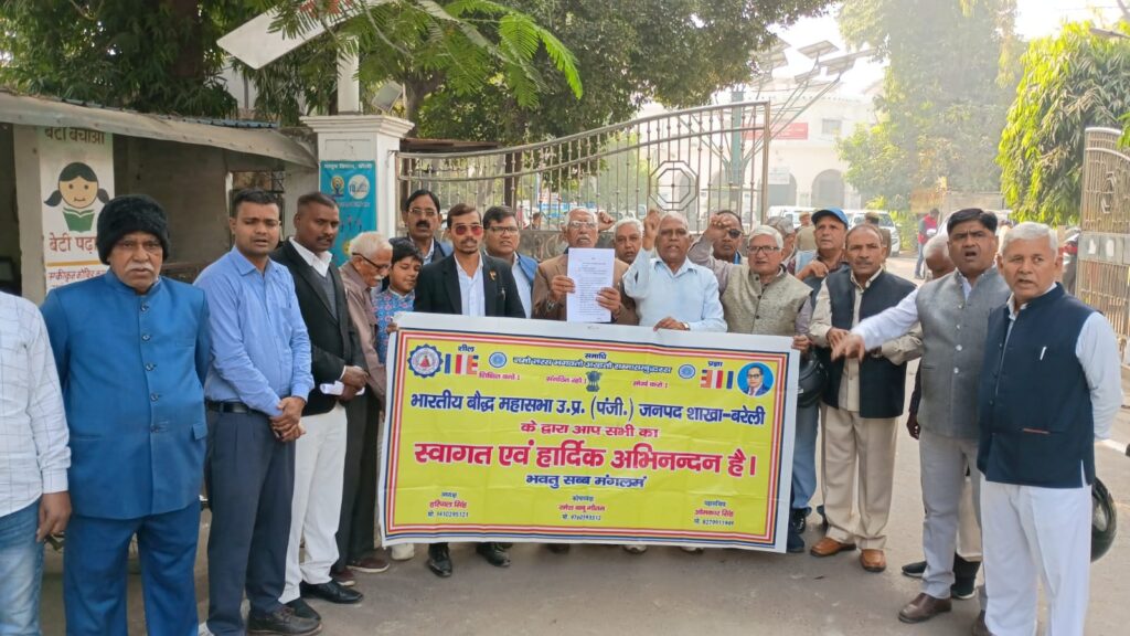 बरेली । भारतीय बौद्ध सभा एवं भारतीय बौद्ध दर्शन सोसाइटी के बैनर तले बड़ी संख्या बौद्ध धर्म के लोग अपनी मांगों के समर्थन में बरेली कलक्ट्रेट पहुंचे और प्रदर्शन कर महामहिम राज्यपाल एवं सीएम योगी को एक संबोधित ज्ञापन देकर बौद्ध गया मंदिर अधिनियम 1949 के परिवर्तन के सम्बंध में एक ज्ञापन एसीएम प्रथम प्रमोद कुमार को सौंपा । इस मौके पर बौद्ध समाज के लोगों ने बौद्ध गया मंदिर अधिनियम-1949 में सरकार से परिवर्तन करने की मांग की साथ में यह भी कहा कि यह अधिनियम बौद्धों के लिए त्रुटिपूर्ण एवं भेदभावपूर्ण है। वह इस अधिनियम के संबंध में यह परिवर्तन चाहते है। उन्होंने मांग करते हुए यह कहा कि अधिनियम के बिन्दु सं० (क) इस अधिनियम को बौद्ध गया मंदिर अधिनियम 1949 ना कहकर “माहबोधि महाबिहार बौद्धगया अधिनियम 1949” कहा जाये।