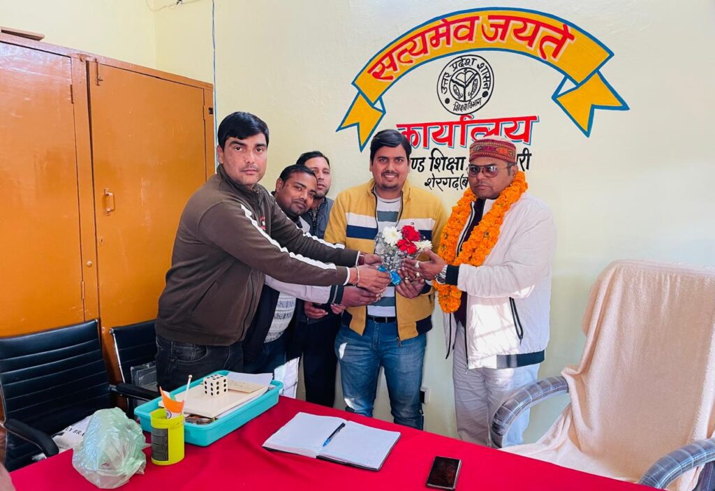 बरेली । ब्लॉक शेरगढ़ में नवागत खंड शिक्षा अधिकारी मुकेश कमल भारती का शुक्रवार को राष्ट्रीय शैक्षिक महासंघ, शेरगढ़ के पदाधिकारीयों द्वारा स्वागत किया गया एवं उत्तर प्रदेश सरकार द्वारा सम्मानित होने पर उन्हें शुभकामनायें दीं गयीं। स्वागत करने वालों में ब्लॉक शेरगढ़ संयोजक दीपक कुमार, विपिन मिश्रा, सह संयोजक प्रकाश शर्मा, सुरेंद्र कुमार एवं अन्य शिक्षक गण मौजूद रहे।