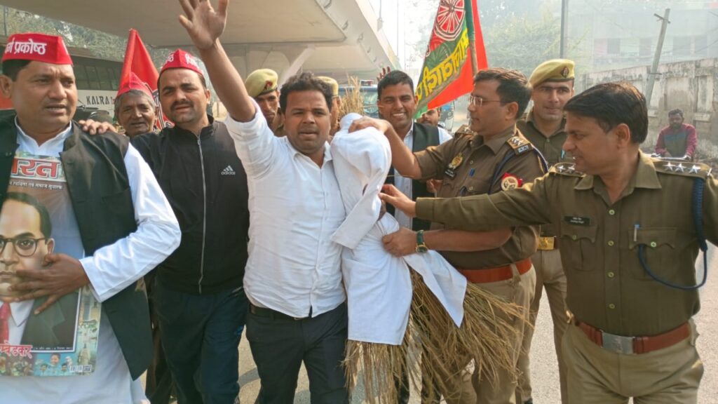 बरेली । समाजवादी पार्टी अनुसूचित जाति जनजाति प्रकोष्ठ के जिला अध्यक्ष अनिल पटेल ने चौपला चौराह पर गृहमंत्री अमित शाह का पुतला फूंकने का प्रयास किया पुलिस ने पुतला फूकने से रोका और छीन कर ले गए, चौपला चौराहा पर सीओ प्रथम पंकज श्रीवास्तव , सीओ सेकंड पंकज कुमार और तीन थानों का फोर्स तैनात था।सपा अनुसूचित जाति जनजाति प्रकोष्ठ के जिला अध्यक्ष अनिल पटेल ने बताया समाजवादी पार्टी के राष्ट्रीय अध्यक्ष अखिलेश यादव के निर्देश पर समाजवादी कार्यकर्ताओं के साथ चौपला चौराहा पर देश के गृहमंत्री अमित शाह का पुतला फूंकने का प्रयास किया जिसमें पुलिस प्रशासन ने पुतला दहन करने से रोक लिया और पुतला फूंकने नहीं दिया पुलिस पुतला छीन कर ले गई। इस दौरान बृजेंद्र पटेल, आदित्य पटेल, आकाश पटेल, भानु गुर्जर, श्रीपाल ,मोहित भास्कर, विवेक दिवाकर , सुबोध जाटव, सत्यपाल जाटव आदि समाजवादी कार्यकर्ता मौजूद रहे।