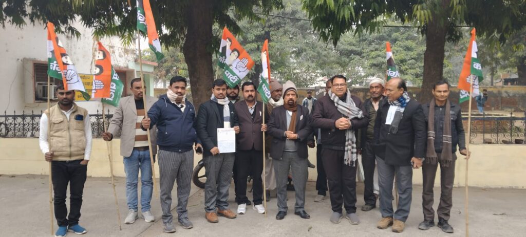 झांसी के पूर्व सांसद पर रिपोर्ट दर्ज होने के विरोध में बदायूँ के कांग्रेसियों ने धरना-प्रदर्शन किया