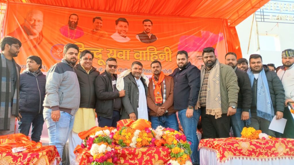 बरेली। बरेली में पीलीभीत बाईपास रोड पर एक बारात घर में रविवार को प्रदेश अध्यक्ष ठाकुर सिद्धराज के नेतृत्व में हिंदू युवा वाहिनी के संगठन का विस्तार किया गया, इस दौरान बरेली लोकसभा और आंवला लोकसभा के कार्यकर्ताओं को पदभार दिया गया और सभी कार्यकर्ताओं को प्रदेश अध्यक्ष ठाकुर सिद्धराज सिंह ने हिंदू एवं समाज हित में कार्य करने की शपथ दिलाई। बरेली में जिन लोगों को जिम्मेदारियां दी गई है, उसमें अजय प्रताप सिंह को प्रदेश मीडिया प्रभारी नियुक्त किया गया है ,ठाकुर सर्वेश सिंह एडवोकेट को बरेली जिला अध्यक्ष, डॉ.आशुतोष दुबे को महानगर अध्यक्ष , शिवेक खंडेलवाल को आंवला लोकसभा अध्यक्ष ,राजबहादुर पटेल को बिथरी विधानसभा अध्यक्ष ,गोविंद सिंह को फरीदपुर विधानसभा अध्यक्ष, हरिओम सिंह को मीरगंज विधानसभा अध्यक्ष और दशरथ गंगवार को नवाबगंज विधानसभा अध्यक्ष नियुक्त किया गया है।