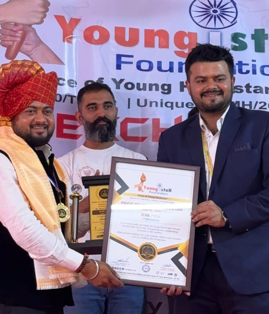 यंगिस्तान फाउंडेशन ने आलोक पटेल को प्राइड ऑफ यंग हिंदुस्तान अवार्ड से किया सम्मानित