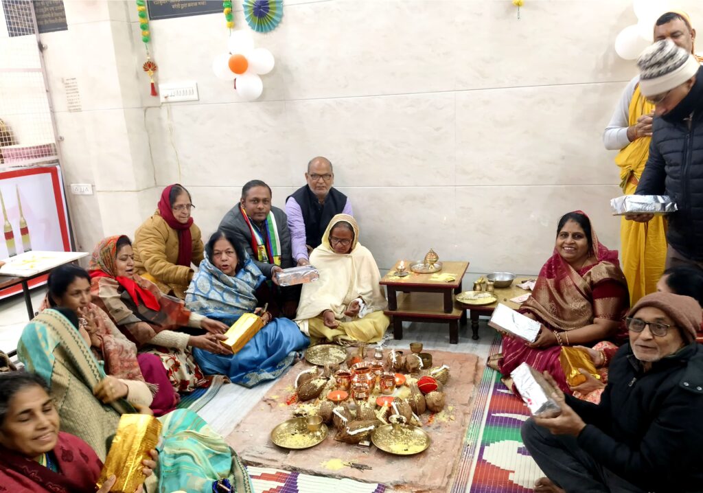 आज का कार्यक्रम कानपुर के सुमित जैन शास्त्री के सानिध्य में संपन्न हुआ। वेदी निर्माण और प्रतिमा जी हेतु देश विदेश के जैन श्रद्धालुओं ने श्रद्धानवत हो दिल खोल के दान भेज पुण्यार्जन कर धर्म लाभ उठाया। आगमी 25 जनवरी को नवीन प्रतिष्ठित प्रतिमाओं के साथ शहर में रथ यात्रा निकाल कर मंदिर जी में शुभ आगमन होगा और अस्थाई वेदी में प्रतिमाओं को विराजित किया जाएगा। कार्यक्रम उपरांत खिचड़ी वितरण दान मंदिर परिसर के बाहर किया गया। आज के कार्यक्रम में जी.एल. अरोड़ा जैन, रामकली जैन परिवार, सुमन कुमार जैन, सतेंद्र जैन, दिनेश चंद्र जैन, मिनेश जैन, राजरानी जैन, चेतना जैन, सपना जैन, त्रिशला जैन, सुनीता जैन, संगीता जैन, अर्चना जैन, अवनि जैन, शालिनी जैन, अंजू जैन, दीप्ति जयपति, अंशु जैन, हार्दिक जैन, आर्जव जैन, चेतना जैन, शुभम जैन, विकास जैन, सुलेखा जैन, सौम्या जैन, राजकुमार जैन, विपिन जैन, रेखा जैन, आशीष जैन, चिंकी जैन, संदीप देसाई जैन , ऊषा जैन, ममता जैन, धर्म चंद्र जैन, अभिषेक जैन, सीमा जैन, पायल जैन, नीतू जैन, भूपेंद्र जैन आदि धर्मावलंबियों ने महती योगदान दिया।