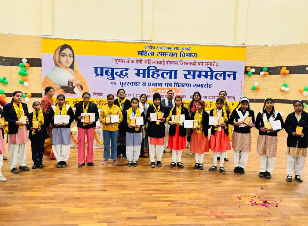 बदायूं । लोकमाता अहिल्याबाई होल्कर त्रिशताब्दी महोत्सव समिति के तत्वाधान में डाइट ऑडिटोरियम में प्रबुद्ध महिला सम्मेलन पुरस्कार एवं प्रमाण पत्र वितरण समारोह का आयोजन किया गया। जिसमें छात्राओं की भाषण प्रतियोगिता भी कराई गई प्रतियोगिता में विभिन्न विद्यालयों से आई छात्राओं ने लोकमाता अहिल्याबाई के व्यक्तित्व एवं कृतित्व पर प्रकाश डाला। प्रतियोगिता में राजकीय महाविद्यालय बदायूं की गीतांजलि ने प्रथम स्थान, दास कॉलेज की भूमिका सिंह ने द्वितीय और बीआईएमटी की छात्रा नंदिनी शर्मा ने तृतीय स्थान पर प्राप्त किया। इसके साथ ही कुछ समय पहले जनपद के कई कॉलेज में निबंध और प्रश्नोत्तरी परीक्षा कराई गई थी। जिसमें प्रथम, द्वितीय और तृतीय स्थान प्राप्त करने वाली छात्राओं को पुरस्कार व प्रमाण पत्र वितरण किए गए।