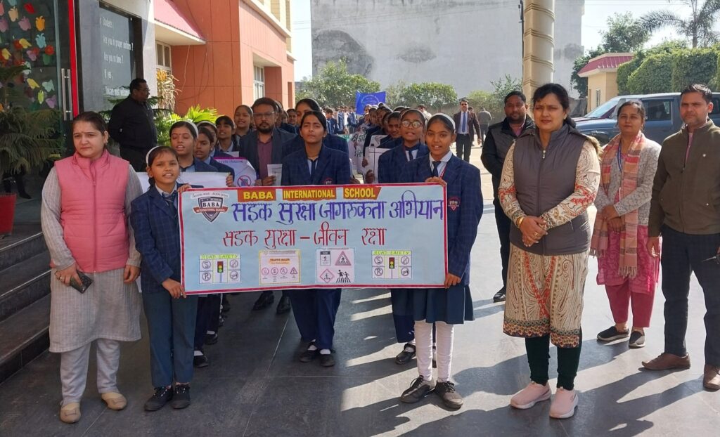 बिल्सी। नगर के बाबा इन्टरनेशनल स्कूल ने आज सड़क सुरक्षा के अंतर्गत जागरुकता रैली निकाली गयी | रैली को विद्यालय निदेशिका साधना वार्ष्णेय व विद्यालय प्रधानाचार्या रूपा माहेश्वरी ने हरी झण्डी दिखाकर रवाना किया | रैली में लोगों को वाहन चलाते समय हेलमेट पहनने के लिए प्रेरित किया | इस दौरान छात्र-छात्राओं द्वारा वाहन धीरे चलाएं, अपना और अपनों का जीवन बचाएं…, धीरे चलें, सुरक्षित चलें…सड़क सुरक्षा-जीवन रक्षा, दुर्घटना से देर भली आदि स्लोगनों के साथ हाथों में पोस्टर लिए बच्चों ने लोगों को यातायात नियमों का पाठ पढ़ाया। इसमें स्कूली छात्र-छात्राओं ने गाड़ी चलाने के दौरान सीटबेल्ट पहनने और ट्रैफिक लाइटों का पालन करने की सीख दी ।