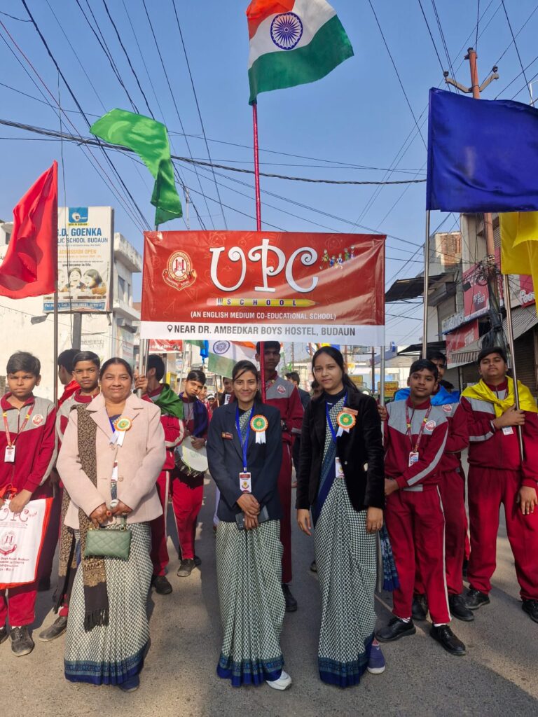 बदायूं: UPC स्कूल में गणतंत्र दिवस बड़े धूमधाम और उत्साह के साथ मनाया गया। इस भव्य आयोजन ने पूरे बदायूं शहर का ध्यान आकर्षित किया। कार्यक्रम की शुरुआत तिरंगा फहराने और राष्ट्रगान के साथ हुई। स्कूल के बच्चों ने रानी लक्ष्मी बाई, महात्मा गांधी, पंडित नेहरू सहित अन्य महान विभूतियों की वेशभूषा धारण की और उनकी विचारधारा को जीवंत किया। इसके साथ ही हिंदू, मुस्लिम, सिख, ईसाई और अन्य धर्मों के प्रतीक चिह्नों के साथ सांप्रदायिक सौहार्द का संदेश दिया।