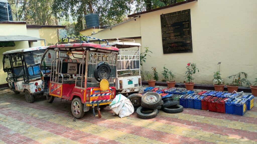 ई रिक्शा चोरी करने वाले 2 चोर मुठभेड़ में गिरफ्तार,5 ई रिक्शा, पार्ट्स, 40 बैटरी नगदी बरामद