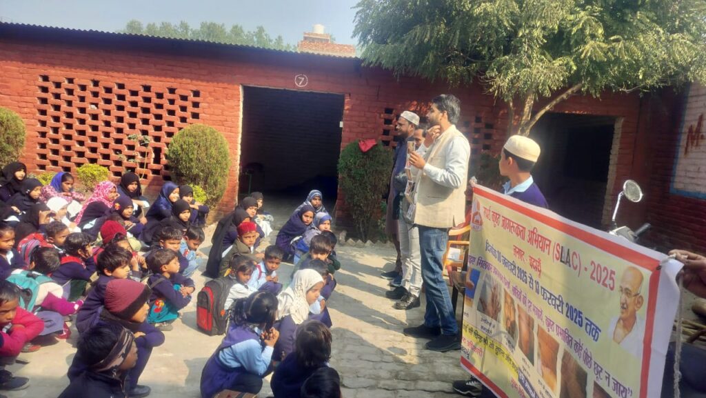 बदायूँ। राष्ट्रीय कुष्ठ उन्मूलन कार्यक्रम के अंतर्गत गांधी जी की पुण्य तिथि पर स्पर्श कुष्ठ जागरूकता अभियान चलाया गया। प्रतिवर्ष अभियान चलाकर लोगों को जागरूक किया जाता है। इसी संदर्भ में आज एम जियाउल कमर हायर सेकेंडरी स्कूल ककराला में कुष्ठ गोष्ठी का आयोजन किया गया। जिसमें विद्यार्थियों को कुष्ठ रोग के लक्षण जैसे कि लाल पीले रंग के दाग धब्बे ,दाग धब्बों पर सुन्नत, खुजली का ना होना, तांत्रिकों का क्षतिग्रसत हो जाना, हाथों का मुड जाना, चलते-चलते चप्पल का उतर जाना, आदि लक्षणों के बारे में प्रकाश डाला गया । कुष्ठ मरीजों से भेदभाव न करने की शपथ ली गई एव उन्हें समाज की मुख्य धारा से जोड़ने का हर संभव प्रयास के लिए प्रेरित किया गया। भारत को कुष्ठ रोग मुक्त भारत बनाने के लिए शपथ ली गई । इस मौके पर हाफिज कमर साहब, प्रधानाचार्य फुरकान अहमद ,स्वास्थ्य विभाग से पीएमडब्ल्यू मोहम्मद जीशान खान ,,(कुष्ठ रोग विभाग) सरफराज अहमद (टीवी विभाग) आदि समस्त स्टाफ उपस्थित रहा।