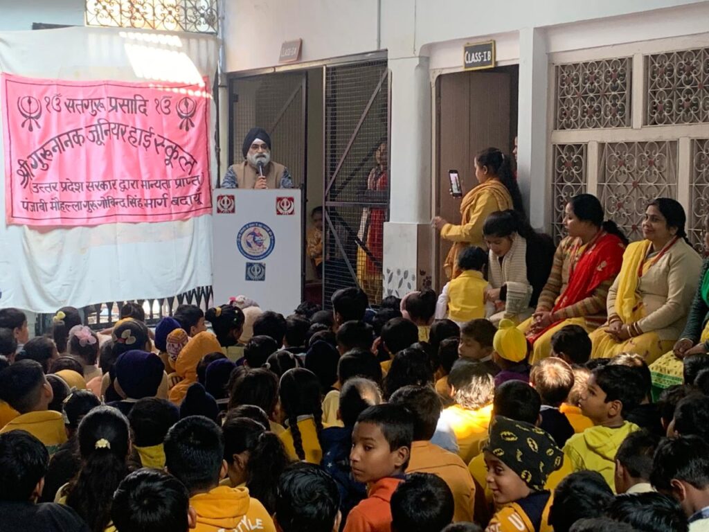 बदायूँ। पंजाबी चौक स्थित श्री गुरु नानक जूनियर हाई स्कूल के प्रांगण में बसंत पंचमी का त्यौहार बड़ी धूमधाम से मनाया गया। कार्यक्रम का शुभारंभ मां वीणा-पाणी के समक्ष दीपक प्रज्वलित कर माल्यार्पण किया गया। इस पावन अवसर पर कक्षा 7 की परिधि गुप्ता ने सरस्वती वंदना प्रस्तुत कर सबका मन मोह लिया। इसके उपरांत कक्षा 5th की हिमांशी, 8th की प्राची ने वसंत पंचमी पर अपने विचार प्रस्तुत किए और कक्षा 4th की प्रीतिका व कक्षा 7th के यश कश्यप ने अपनी कविता प्रस्तुत की। इस अवसर पर विद्यालय की शिक्षिकाओं ने भी अपने विचार व्यक्त किये। इस पुनीत अवसर पर विद्यालय की प्रधानाचार्या जी ने भी सभी को बसंत पंचमी के बारे में अवगत कराया और शुभकामनाएं दी। इसके उपरांत विद्यालय के वरिष्ठ उपाध्यक्ष सरदार गुरदीप सिंह जी व उपाध्यक्ष श्रीमती वीना कोचर जी ने बताया कि इस प्रकार के कार्यक्रमों के आयोजन से एकता व एक दूसरे के धर्म के प्रति ज्ञानवर्धन व सामाजिकता की भावना का विकास होता है। इस कार्यक्रम में विद्यालय के वरिष्ठ उपाध्यक्ष सरदार गुरदीप सिंह जी उपाध्यक्ष वीना कोचर जी उप प्रबंधक सरदार रंजीत सिंह जी व कोषाध्यक्ष संजय मलिक जी उपस्थित रहे। कार्यक्रम का संचालन कुमारी निदा खान द्वारा किया गया। अंत में प्रसाद वितरण भी किया गया। इस अवसर पर समस्त स्टाफ उपस्थित रहा।