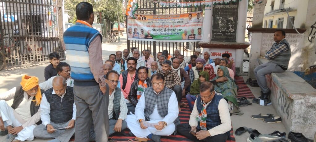 उझानी नगर पालिका गेट पर कांग्रेस ने धरना-प्रदर्शन किया,ज्ञापन दिया
