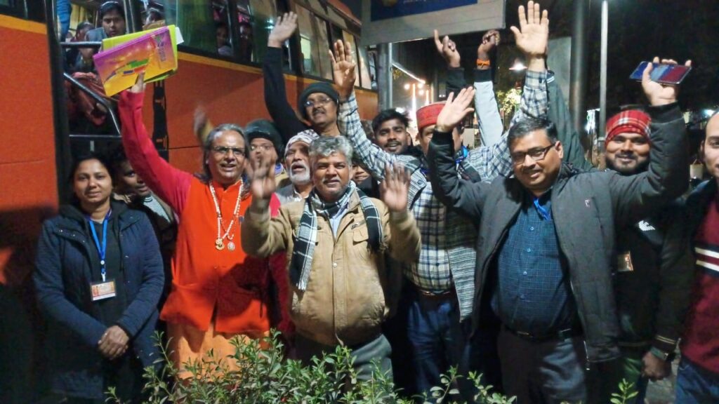 बरेली। महाकुंभ आस्था और विश्वास से 160 श्रद्धालुओं ने हर हर गंगे और हर हर महादेव के नारे लगा कर बरेली से हुए रवाना, सर्वदेव सांई मंदिर के महंत पंडित सुशील पाठक आज 14 तारीख से 3 लग्जरी बसों से महाकुंभ प्रयागराज की यात्रा प्रारंभ की है तीन बसों के द्वारा 160 श्रद्धालु 15 तारीख को महाकुंभ में लगाएंगे डुबकी। यह बसे आज 14 तारीख को बरेली के श्यामगंज सर्वदेव साईं मंदिर से शाम रवाना गई है , कल 15 तारीख को शुभ स्नान करने के बाद यह बसे बाबा विश्वनाथ की नगरी काशी में बाबा के दर्शन करेंगी और रात्रि विश्राम भी वही होगा इसके बाद यह यात्री 16 तारीख को वापस अयोध्या में भगवान श्री राम लाला के दर्शन कर श्रद्धालु वापस बरेली लौट आयेंगे।