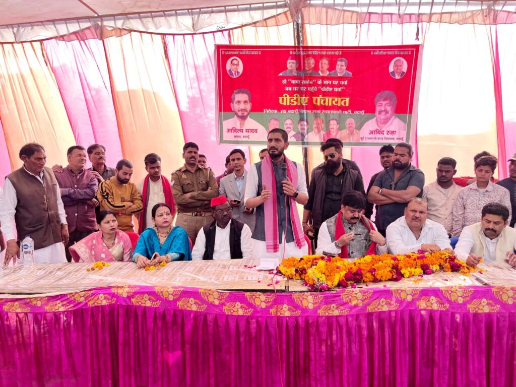 बदायूँ । सपा सांसद आदित्य यादव का आज ग्राम पोगौटिया, गिरधरपुर,औरंगाबाद माफ़ी, व्योर,सेमरमई,विजय नगला, रसूलपुर मे सपा कार्यकर्ताओ ने जोरदार स्वागत किया। इसके पश्चात सांसद ग्राम उझौली, मो. नगर सुल्हरा, व्योर, चंदौरा, थरा, बाकरपुर खरेर और मोहल्ला कबूलपुरा मे आयोजित PDA पंचायत मे शामिल हुएl ग्राम मोहम्मद. नगर सुलहरा मे PDA पंचायत को सम्बोधित करते हुए सपा सांसद आदित्य यादव ने कहा कि भारतीय जनता पार्टी बाबा साहब के संविधान को खत्म करना चाहते है* आज अगर PDA पंचायत गाँव गांव हम लोग कर रहे हैं और आपके बीच में अगर आए हैं तो उसका मक़सद यही है कि ये लड़ाई अभी खत्म नहीं हुई है। इसलिए खत्म नहीं हुई है क्यूंकि उस लोक सभा जिसमें आपने मुझे भेजा है उस लोकसभा के अंदर हमें बहुत दुख होता है बहुत पीड़ा होती है कि जब आपके हमारे संविधान के निर्माता बाबा साहेब का जिस तरीके से सरकार के उत्तम पद पर बैठे मंत्री अगर उनके अपमान मै कुछ बाते कहते है तो ये हमें भी दिखता है कि इसी संविधान जिसने हमें ताकत दी है जो आपको ताकत दे रहा है कहीं ना कहीं वो मुझे भी ताकत दे रहा है अगर मै आज लोकसभा के अंदर आपका नेतृत्व कर पा रहा हूं तो ये हमारे संविधान की ताकत है बाबा साहेब की ताकत है जिसकी वजह से मै वहां जा पा रहा हूं | आज हमें आपको जरूरत है कि हमें सबसे पहले हमें ये नहीं देखना है कि मै किस पार्टी से आता हूं आप किस पार्टी से आते हो। आज जरूरत इस बात की है कि हमारे देश की जो तस्वीर है वो तस्वीर ऐसी ही बनी रहे कि एकता जब बनी रहेगी तभी हमारी पार्टी हमारी विचारधारा चल पाएगी अन्यथा यह भारतीय जनता पार्टी वह पार्टी है याद रखियेगा यह वह लोग है जो बड़े-बड़े वादे सरकार में आने से पहले करते है और जब सरकार मै आते है तो आपके हमारे हाथों कमजोर करने का काम यह भारतीय जनता पार्टी वाले करते है। इस मौके पर पूर्व विधायक आबिद रज़ा, विधान सभा अध्यक्ष ओमवीर सिंह,राजू जाटव, मोर सिंह जाटव,यासीन गद्दी, राजेंद्र शाक्य, डॉ राजवीर सिंह, स्वाले चौधरी, मो. मियां, नत्थू राम कश्यप,अनवर आलम,संतोष कश्यप, तरुण शाक्य, प्रमोद, टीटू पाल, मोदप्रकाश पाल,सरवन कश्यप, शशांक यादव, अनिल गोस्वामी सहित साथ रहे
