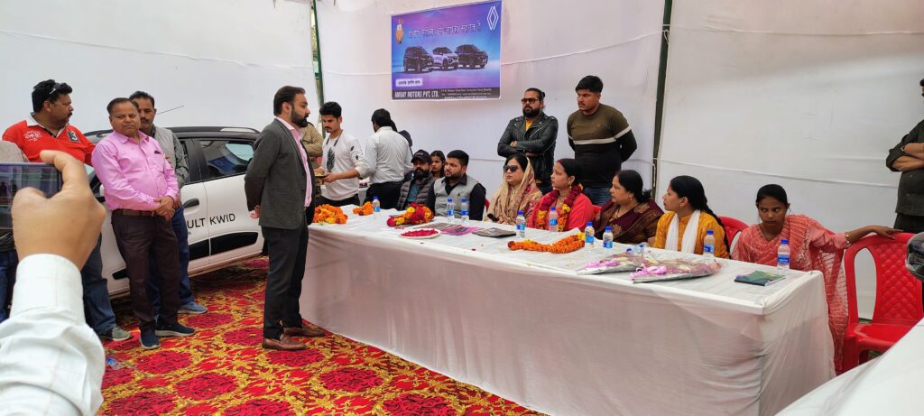 बदायूं । सिविल लाइन में आयोजित Renault कार ग्रामीण महोत्सव का आयोजन हुआ ।जिसमे मुख्य अतिथि नगर पालिका परिषद अध्यक्ष फातिमा रजा रहीं । साथ में हर्षित यादव , महिला सभा सपा अध्यक्ष संतोष कश्यप , रणवीर यादव व रिनॉल्ट इंडिया से एरिया मैनेजर जीशान ख़ान , जनरल मैनेजर विकास वर्मा जी , रिनॉल्ट बदायूं ब्रांच मैनेजर प्रतीक वर्मा जी , सेल्स एक्जीक्यूटिव सुनील कुमार , पीडब्ल्यूडी ठेकेदार अवधेश कुमार , मुनेंद्र सिंह , गिरीश यादव ,अमित माहेश्वरी , मनोज गुप्ता आदि उपस्थित रहे । प्रोग्राम को संबोधित करते हुए चेयरमेन फात्मा रजा ने रिनॉल्ट परिवार को शुभकामनाएं दी । कंपनी के अधिकारियों ने रिनॉल्ट का नाम 125 वर्षों के इतिहास को बताते हुए वर्तमान में चल रहे तीनो माडल ( क्विड ,काइगर , ट्राइबर ) के बारे में विस्तृत जानकारी देते हुए ग्रामीण ऑफर्स के बारे में बताया ।