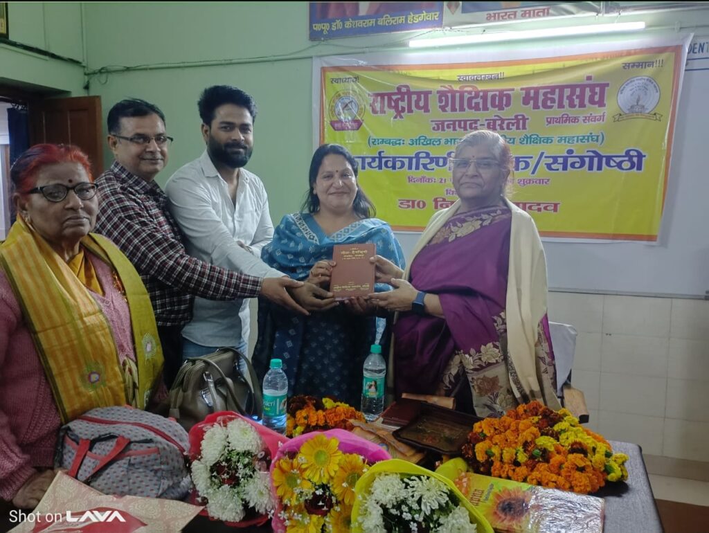 बैठक में राष्ट्रीय शैक्षिक महासंघ उत्तर प्रदेश की प्रदेश अध्यक्ष डॉ निर्मला यादव की विशेष उपस्थिति रही इसके साथ ही राष्ट्रीय सेविका समिति ब्रज प्रांत की कार्यकारिणी सदस्य एवं बरेली और बदायूं की पालक अधिकारी, राष्ट्रीय शैक्षिक महासंघ की संस्थापक सदस्य एवं प्रदेश मंत्री कृष्णा शर्मा का भी संगठन कार्यकर्ताओं को आशीर्वचन प्राप्त हुआ। बैठक का शुभारंभ मां सरस्वती के समक्ष दीप प्रज्वलन कर सरस्वती वंदना के साथ हुआ। जिला अध्यक्ष प्रियंका शुक्ला ने सभी दायित्व वंधुओं का स्वागत किया शालिनी सक्सेना द्वारा स्वागत गीत से प्रदेश अध्यक्ष का अभिनंदन किया गया। प्रदेश अध्यक्ष डॉ यादव द्वारा सभी कार्यकर्ताओं को संगठन के ध्येय मंत्र की व्याख्या करते हुए संगठन में विश्वास रखने की प्रेरणा दी । उन्होंने कहा हमें अपने अधिकारों के साथ-साथ कर्तव्यों का निर्वहन करना चाहिए हमें नकारात्मक ऊर्जा से भयभीत अथवा अपने कर्तव्यों से भटकना नहीं चाहिए कार्यकर्ताओं के मनोबल को बढ़ाते हुए पूरी निष्ठा के साथ आगे बढ़ने एवं शिक्षा के साथ-साथ समाज के प्रति जागरूक होने के लिए प्रेरणा दी गई । संगठन के संरक्षक के रूप में होते लाल दीक्षित द्वारा प्रदेश अध्यक्ष को स्मृति चिन्ह भेद की गई इसके साथ ही सभी उपस्थित मातृशक्ति द्वारा प्रदेश अध्यक्ष को सवाल और सवाल उड़कर अभिनंदन किया गया जिला कार्यकारिणी के सदस्यों द्वारा अध्यक्ष को गीता दयानंदिनी भेंट स्वरूप प्रदान की गयी। कार्यक्रम के अंत में जिला महामंत्री सुनील कुमार शर्मा द्वारा अध्यक्ष के बहुमूल्य समय एवं उनके आशीर्वचन के लिए हृदय से आभार व्यक्त किया गया सभी उपस्थित दायित्व बंधुओ का धन्यवाद ज्ञापित किया गया। आज की कार्यकारिणी बैठक में जिला कोषाध्यक्ष परीक्षित गंगवार, वरिष्ठ उपाध्यक्ष शरद दीक्षित,ब्लॉक अध्यक्ष आलमपुर राजेंद्र प्रसाद तिवारी ब्लॉक अध्यक्ष मजगामा सत्यपाल सिंह ब्लॉक अध्यक्ष रामनगर सत्यार्थ पाराशरी राजपाल विनय शर्मा अंजू अग्रवाल उषा शर्मा पारुल चंद्र पूजा शर्मा चेतन मौर्य संजीव शंखधर अवनीश गंगवार आदि सदस्य मौजूद रहे।