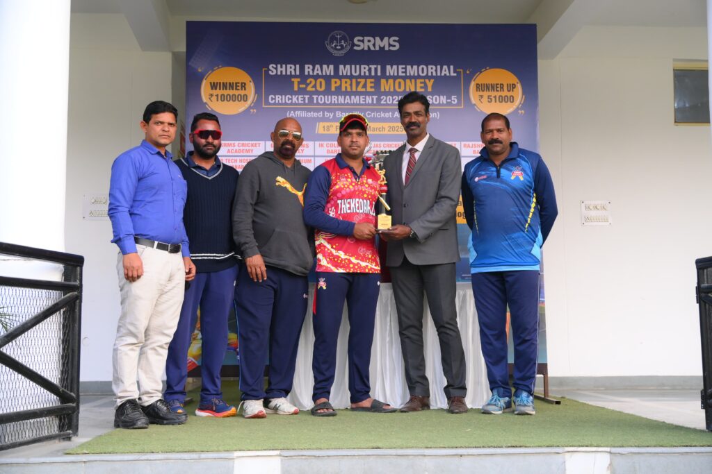 बरेली। श्रीराम मूर्ति मेमोरियल टी- 20 प्राइज मनी क्रिकेट टूर्नामेंट पांचवें सीजन के चौथे दिन शुक्रवार को ग्रुप बी में हाईटेक हॉस्पिटल वाराणसी और स्पोर्ट्स स्टेडियम बरेली के बीच और ग्रुप डी में ठेकेदार इलेवन बरेली और राजश्री क्लब बरेली के बीच मैच हुए। इसमें स्पोर्ट्स स्टेडियम बरेली ने हाइटेक हॉस्पिटल वाराणसी को 8 विकेट से हराया। ठेकेदार इलेवन बरेली ने राजश्री क्लब बरेली को 121रन से करारी शिकस्त दी। स्पोर्ट्स स्टेडियम बरेली के लिए एक विकेट लेने के साथ 35 गेंदों पर नाबाद 36 रन बनाने वाले माजिद हसन खान को मैन आफ द मैच चुना गया। शुक्रवार के दूसरे मैच में ठेकेदार इलेवन बरेली के विकास सिंह ने धुंआधार बल्लेबाजी करते हुए टूर्नामेंट का पहला शतक लगाने का गौरव हासिल किया। उन्होंने मात्र 67 गेंदों पर 9 छक्कों और 12 चौकों की मदद से 127 रन बनाए। विकास को ही मैन आफ द मैच चुना गया। एसआरएमएस इंजीनियरिंग कालेज स्थित श्रीराम मूर्ति क्रिकेट स्टेडियम में शुक्रवार को टूर्नामेंट का सातवां और आठवां मैच खेला गया। सुबह सातवें मैच में हाईटेक हॉस्पिटल वाराणसी और स्पोर्ट्स स्टेडियम बरेली के बीच ग्रुप बी का मैच आरंभ हुआ। इसमें स्पोर्ट्स स्टेडियम के कप्तान जेपी ने हाईटेक हॉस्पिटल वाराणसी को बल्लेबाजी के लिए आमंत्रित किया। स्पोर्ट्स स्टेडियम के आक्रमण के आगे हाईटेक की टीम 17.5 ओवर में 121 रन ही बना सकी। शिवम पटेल (45 रन, 39 गेंद, 6 चौके) और सम्राट (40 रन, 24 गेंद, 2 चौके, 4 छक्के) को छोड़ कर कोई भी बल्लेबाज दहाई के अंक तक नहीं पहुंचा। स्पोर्ट्स स्टेडियम बरेली ने दो विकेट के नुकसान पर 19.1 में 122 रन बना कर 8 विकेट से मैच जीत लिया। स्पोर्ट्स स्टेडियम के दोनों विकेट रन आउट हुए। स्पोर्ट्स स्टेडियम की जीत में शिवांशु पांडेय (22 रन, 25 गेंद, 3 चौके), मोहित कुमार (46 रन, 44 गेंद, 3 चौके, 1 छक्का) और माजिद हसन खान (36 रन, 35 गेंद, 4 चौके) ने महत्वपूर्ण भूमिका निभाई। स्पोर्ट्स स्टेडियम बरेली के लिए एक विकेट लेने के साथ नाबाद 36 रन बनाने वाले माजिद हसन खान को मैन आफ द मैच चुना गया। टूर्नामेंट का आठवां मैच ग्रुप डी की टीमों ठेकेदार इलेवन बरेली व राजश्री क्लब बरेली के बीच खेला गया। इसमें ठेकेदार इलेवन ने टॉस जीत कर पहले बल्लेबाजी की और निर्धारित 20 ओवर में 5 विकेट के नुकसान पर 233 रन बनाए। इसमें विकास सिंह ने धुंआधार बल्लेबाजी की और मात्र 67 गेंदों पर 9 छक्कों और 12 चौकों की मदद से 127 रन बनाए। ठेकेदार इलेवन के लिए सेहरावत (37 रन, 20 गेंद, 3 चौके, 3 छक्के) और अजय (30 रन, 11 गेंद, 1 चौका, 3 छक्के) ने भी महत्वपूर्ण योगदान दिया। पहाड़ से लक्ष्य का पीछा करने उतरी राजश्री क्लब बरेली की टीम जल्द ही बिखर गई। ओपनर वासिल सरताज को मैच के दूसरे ओवर में 2 रन के निजी स्कोर पर मोहित कनौजिया ने बोल्ड कर दिया। त