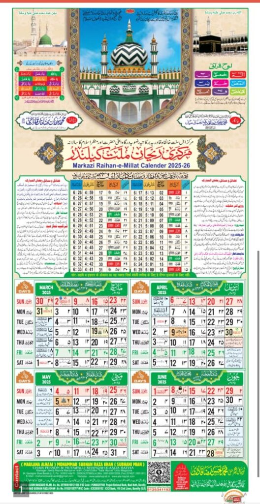 बरेली। मुक़द्दस महीना रमज़ान का आगाज़ 01 या 02 मार्च को चांद के दीदार के साथ हो जाएगा। रमज़ान को लेकर मस्जिदों,दरगाहों,खानकाहों,मदरसो और घरों में तैयारियां शुरू हो चुकी है। मस्जिदों में तरावीह के लिए हाफिज़ नियुक्त किये जा रहे है। रंग-रोगन व साफ-सफाई का काम तेजी से चल रहा है। सहरी व इफ्तार की समय सारिणी (जंत्री) के साथ कलेंडर दरगाह प्रमुख हज़रत मौलाना सुब्हान रज़ा खान (सुब्हानी मियां) व सज्जादानशीन मुफ़्ती अहसन रज़ा क़ादरी(अहसन मियां) ने संयुक्त रूप से जारी कर दिया। जिसमें पहले रोज़े से आखिरी रोज़े तक सहरी व इफ्तार का वक़्त दर्शाया गया। दरगाह के वरिष्ठ मुफ़्ती सलीम नूरी बरेलवी ने बताया कि जंत्री के अलावा मरकज़ी रेहाने मिल्लत कलैंडर भी जारी किया गया है। जिसमें साल भर होने वाले मुसलमानों के त्यौहार व देश भर में होने वाले प्रमुख उर्स की तारीख भी दर्शायी गयी है। दरगाह से जुड़े नासिर कुरैशी ने बताया कि रोज़ा व इफ्तार की दुआ के अलावा सदक़ा-ए-फित्र,एतेकाफ,तरकीब नमाज़ ईद,फ़ज़ाइल रमज़ान,नमाज़-ए-तरावीह व मकरुआत रोज़ा आदि का मसला भी कलैंडर में दिया गया है। मरकज़ी रेहाने मिल्लत कलैंडर को देश-विदेश में अक़ीदमंदो व मुरीदों को सोशल मीडिया व डाक द्वारा भेजा जा रहा है।