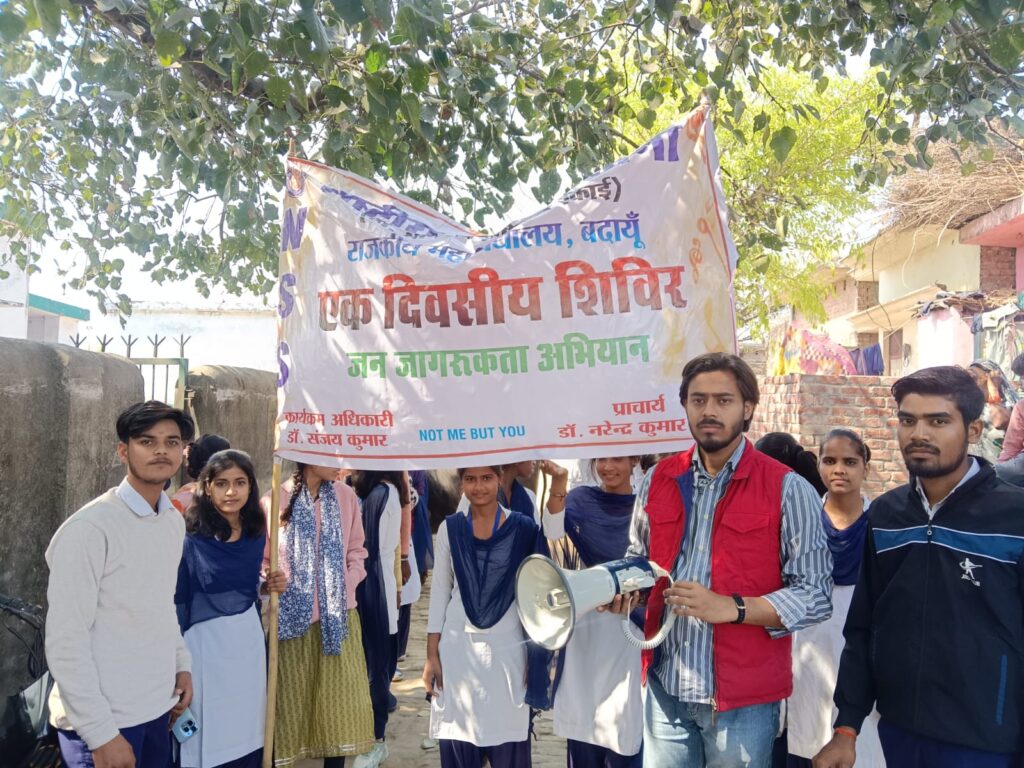 बदायूँ।।राजकीय महाविद्यालय आवास विकास में संचालित एनएसएस की अंबेडकर इकाई के सात दिवसीय विशेष शिविर के चौथे दिन अपने अभिगृहीत गांव रसूलपुर बिलहरी में नारी सशक्तिकरण दिवस आयोजित कर महिलाओं के अधिकार, शिक्षा, सुरक्षा, स्वास्थ्य आदि के प्रति जन जागरूकता अभियान चलाया गया । कार्यक्रम अधिकारी डॉ संजय कुमार के नेतृत्व में स्वयंसेवियों ने डोर टू डोर जन संपर्क कर नारी सशक्तिकरण के लिए लोगों को जागरूक किया गया। बौद्धिक सत्र में मुख्य अतिथि एनसीसी की प्रभारी डॉ श्रद्धा गुप्ता ने कहा कि कहा कि नारी सशक्तिकरण के द्वारा ही कोई राष्ट्र अपनी शक्ति में वृद्धि कर सकता है। मुख्य वक्ता वनस्पति विज्ञान की विभागाध्यक्ष डॉ सरिता ने कहा कि जिस देश में नारी की सुरक्षा और सम्मान नहीं है वह देश प्रत्येक स्तर पर पिछड़ेपन का शिकार है। डॉ प्रियंका सिंह ने कहा कि हमें महिलाओं के अधिकारों को संरक्षित रखते हुए ही आधुनिकीकरण की दिशा में कदम बढ़ाना चाहिए। संगोष्ठी का संचालन इशराक अहमद तथा आभार ज्ञापन निखिल सिंह ने किया। इस अवसर पर डॉ हुकुम सिंह, डॉ गौरव कुमार सिंह, डॉ नीरज कुमार , अर्चना ,शीतल, संध्या, अनामिका मिश्रा, श्रुति ,रजनी वर्मा , ज्योति कुमारी ,गायत्री , सेजल, विपिन कुमार, नंदिनी, मोहनलाल,राजेश कुमार, कौशल कुमार आदि उपस्थित थे।