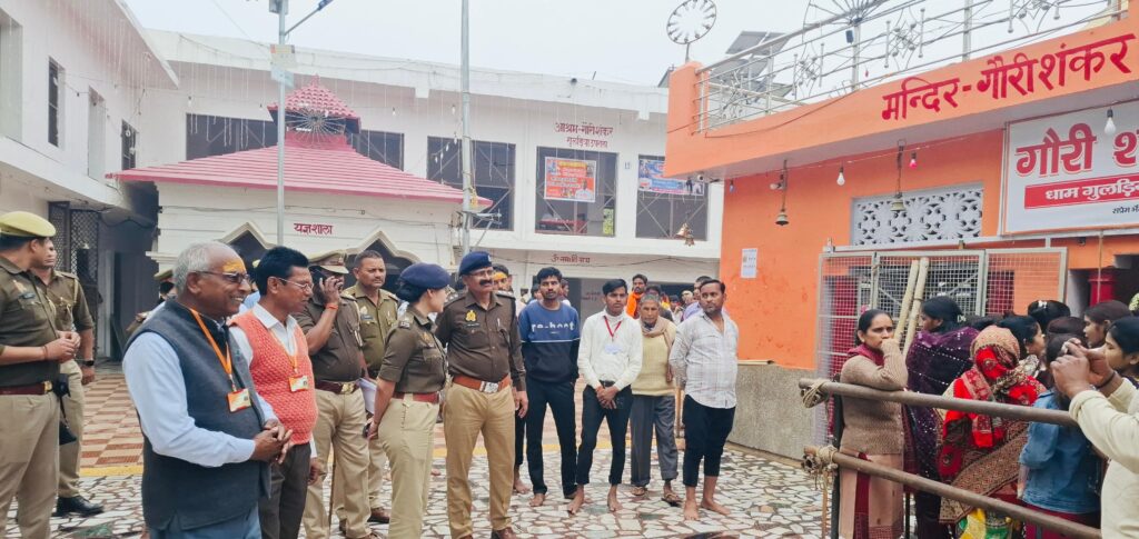 बरेली। महाशिवरात्रि त्यौहार पर पुलिस अधिकारियों ने गौरी शंकर मन्दिर ग्राम गुलडिया थाना सिरौली का निरीक्षण कर संबंधित को आवश्यक दिशा-निर्देश दिये गये। पुलिस अधीक्षक दक्षिणी द्वारा क्षेत्राधिकारी मीरगंज व थाना प्रभारी सिरौली मय पुलिस बल के साथ महाशिवरात्रि पर्व पर जलाभिषेक के दृष्टिगत गौरी शंकर मन्दिर ग्राम गुलडिया थाना सिरौली का निरीक्षण कर सुरक्षा व्यवस्था का जायजा लिया गया तथा सम्बन्धित आवश्यक दिशा निर्देश दिये ताकि त्यौहार के समय शांति व्यवस्था बनी रहे।