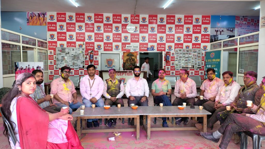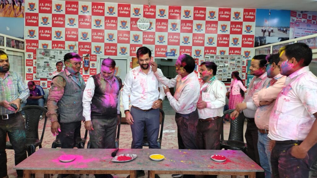 बदायूं। जे एस (पी.जी) कॉलेज में होली पर्व का भव्य आयोजन किया गया। कार्यक्रम में कॉलेज डायरेक्टर विकास यादव , प्राचार्य राहुल कुमार,सभी शिक्षक गण एवं बच्चे आदि उपस्थित रहे ।कॉलेज के प्रांगण में सभी ने गुलाल लगाकर एक दूसरे को होली की शुभकामनाएं दी।