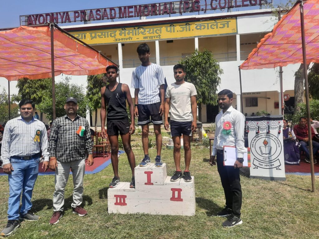 उझानी। एपीएम कालेज में वार्षिक क्रीड़ा महोत्सव का शानदार आगाज हुआ। कार्यक्रम के मुख्य अतिथि महाविद्यालय प्रबंध समिति के अध्यक्ष विष्णु भगवान अग्रवाल ने मां सरस्वती के चित्र के समक्ष दीप प्रज्ज्वलित करके कार्यक्रम का शुभारम्भ किया महाविद्यालय के चीफ प्रॉक्टर डॉ. त्रिवेन्द्र कुमार सिंह ने बैज लगाकर उनका स्वागत किया। मुख्य अतिथि को मार्च पास्ट कार्यक्रम में सभी प्रतिभागियों ने सलामी दी जिसका नेतृत्व 5000 मीटर दौड़ के विजेता सवेंद्र पाल के द्वारा किया गया। सवेंद्र पाल के द्वारा मशाल दौड़ तत्पश्चात राष्ट्रगान के साथ पारंपरिक रूप से क्रीड़ा महोत्सव प्रारंभ हुआ। छात्र वर्ग में 200 मीटर दौड़ में सुरेन्द्र पाल प्रथम, आलोक दूसरे स्थान पर एवं अभिषेक तृतीय स्थान पर रहे।1500 मीटर दौड़ में दुर्वेश प्रथम स्थान, सवेंद पाल दूसरे स्थान पर एवं सुमित तृतीय स्थान पर रहे। 800 मीटर दौड़ में देवराज प्रथम स्थान, कृष्ण कुमार दूसरे स्थान पर एवं आलोक तृतीय स्थान पर रहे।