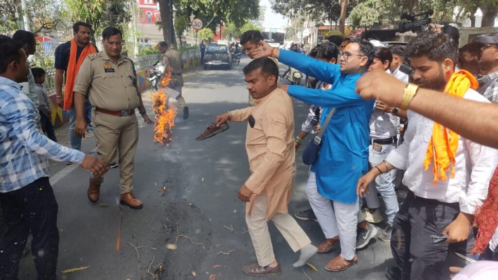विश्व हिंदू परिषद ने अखिलेश यादव का फूंका पुतला