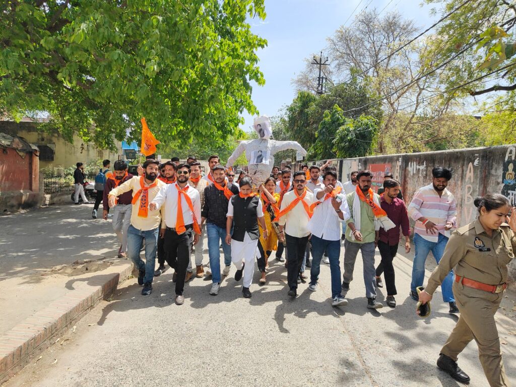 बरेली। अखिल भारतीय विद्यार्थी परिषद बरेली महानगर मंत्री आनंद के नेतृत्व में अभाविप बरेली महानगर के कार्यकर्ताओं ने बरेली कॉलेज से नारेबाजी करते हुए चौकी चौराहा पर पहुंचे. पुलिस प्रशासन ने पुतला फूंकने से रोका. इस दौरान अखिल भारतीय विद्यार्थी परिषद बरेली महानगर के कार्यकर्ताओं ने सपा सांसद रामजी लाल सुमन का पुतला जबरन फूंका और माफी मांगने की मांग की .अभाविप ने सपा के राज्यसभा सांसद रामजी लाल सुमन के खिलाफ सड़क पर उतर कर प्रदर्शन किया। अखिल भारतीय विद्यार्थी परिषद ने सपा का सांसद के खिलाफ जमकर नारेबाजी की और चौकी चौराहा पुलिस प्रशासन को चकमा देकर पुतला फूंका। महानगर मंत्री आनंद कठेरिया का कहना है कि सपा सांसद ने महापुरुष राणा सांगा को लेकर गलत बयान दिया है, राणा सांगा हमारे महापुरुष है उनके खिलाफ इस तरह की भाषा बर्दाश्त नहीं करेंगे। सपा सांसद को पूरे देश से माफी मांगनी चाहिए, राणा सांगा ने हमारे लिए अपने शरीर घाव खाए है। सपा सांसद रामजी लाल सुमन पूरे देश से माफी मांगे और अगर माफी नहीं मांगते है तो अखिल भारतीय विद्यार्थी परिषद उग्र आंदोलन करेगा।