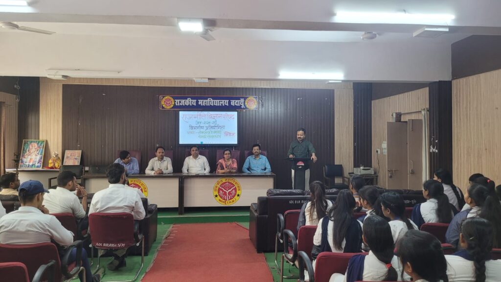 बदायूं। आवास विकास स्थित राजकीय महाविद्यालय में राजनीति विज्ञान परिषद के द्वारा “लोकतन्त्र में वंशवाद: समस्या और समाधान ” विषय पर भाषण प्रतियोगिता आयोजित की गई। प्रतियोगिता में प्रथम स्थान एम ए अंतिम सेमेस्टर के छात्र सम्भव कुमार ने प्रथम स्थान प्राप्त किया। राष्ट्रीय आन्दोलन एवं भारतीय संविधान पर क्विज़ प्रतियोगिता भी कराई गई इसमें भी सम्भव ने प्रथम स्थान प्राप्त किया। कार्यक्रम का उद्घाटन प्राचार्य डॉ नरेंद्र कुमार बत्रा द्वारा सरस्वती प्रतिमा के समक्ष दीप प्रज्वलित कर किया गया। भाषण प्रतियोगिता में दूसरा स्थान निखिल सिंह चौहान को मिला। तीसरे स्थान पर इशराक अहमद खान रहे। जबकि क्विज़ में दूसरा स्थान लता यादव को मिला। तीसरे स्थान पर पवन कुमार रहे। निर्णायक की भूमिका डॉ सतीश सिंह यादव, डॉ संजय कुमार एवं डॉ गौरव कुमार सिंह ने निभाई। कार्यक्रम का संचालन करते हुए विभागाध्यक्ष डॉ राकेश कुमार जायसवाल ने कहा कि राजतंत्र योग्यता को उपेक्षित कर जिस वंशवाद पर टिका था और जिसके कारण राजतंत्र का पतन हुआ किन्तु दुर्भाग्य से वही बुराई आज भी लोकतन्त्र में बनी हुई है। राजनीति विज्ञान के असिस्टेंट प्रोफेसर डॉ दिलीप कुमार वर्मा ने कहा कि परिवारवादी राजनीति से भ्रष्टाचार और अपराध का संरक्षण होता है। प्राचार्य डॉ नरेंद्र कुमार बत्रा ने कहा कि वंशवाद के कारण युवा पीढ़ी की योग्यता का राजनीति में सदपयोग नहीं हो पा रहा है। शासक के प्रति जनता का भावनात्मक लगाव ही इसका सबसे बड़ा कारण है। राजनीति विज्ञान परिषद की अध्यक्ष अभिलाषा यादव ने सभी के प्रति आभार ज्ञापित किया। इस अवसर पर डॉ श्रद्धा गुप्ता, डॉ रवींद्र यादव, डॉ प्रेमचंद चौधरी, डॉ राशेदा खातून, डॉ जुनैद आलम, गौसिया, अनन्त दिवाकर, रोशनी, प्रियांशी, तमन्ना, समीक्षा, महिमा भारती आदि उपस्थित थे।