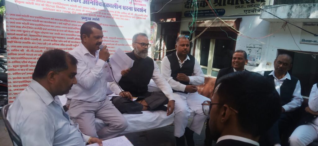 बरेली बार एसोसिएशन के अध्यक्ष व सचिव के खिलाफ धरना प्रदर्शन दूसरे सप्ताह भी जारी