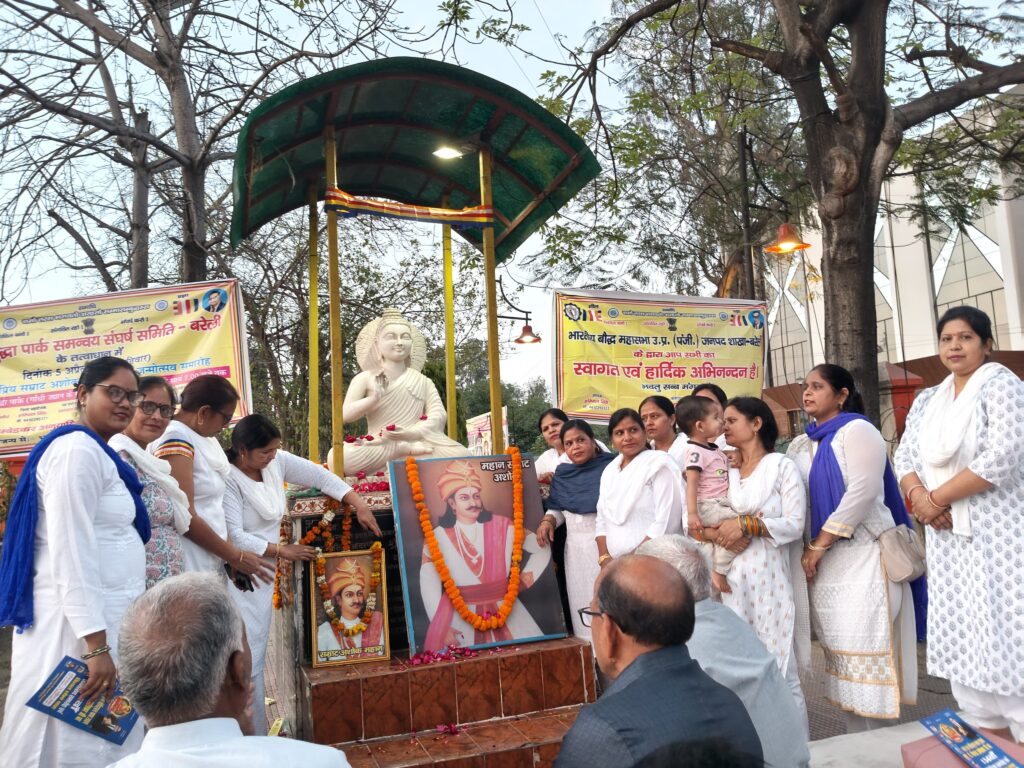 बरेली। गौतम बुद्ध पार्क गांधी उद्यान के सामने एक बैठक एवं सम्राट अशोक की जयन्ती बहुत धुम धुम से मनायी गयी । सर्वप्रथम बुद्ध वंदना कर तथागत गौतम बुद्ध कि प्रतिमा पर पुण्प अर्जित कर कार्यक्रम का शुभारंभ किया गया। जिसमे गौतम बुद्ध पार्क समन्वय समिति बरेली कि बैठक हुई। जिसम पार्क के सौन्दर्भकरण एवं तथागत बुद्ध चोक जो बनाया जा रहा है | उसके लिये गौतम बुद्ध पार्क समन्वय समिति बरेली अतिशीघ्र बीडीए सचिव बरेली से मिलकर सौन्दर्यकरण और तथागत बुद्ध चौक के लिए चर्चा एवं इस संबंध में अपनी बात रखने का फैसला लिया गया है जिसमें सभी वक्ताओ ने अपने-अपने सुझाव रखे। ताहुप्रांत चक्रवर्ती व बोधिराजा सम्राट अशोक के चित्र माल्यार्पण कर सम्राट अशोक जयंती बहुत ही धूम धाम से मनाई गई । जिसमें कई गणमान्य लोग उपस्थित रहे । कार्यकम की अध्यक्षता ताराचंद्र चौधरी ने की और वक्ताओं ने सम्राट अशोक महान के जीवन पर प्रकाश डाला और उनके किये गये कामों का उल्लेख किया।कार्यक्रम में हरिपाल सिंह , मेवाराम बौद्ध, ,राजेंद्र सागर , बालकराम बौद्ध , राकेश बाबू , राजाराम , ओमप्रकाश बौद्ध , ओमकार बौद्ध , जगन सिंह राकेश , एडवोकेट ज्ञानेन्द्र सिंह मौर्य , एडवोकेट विजयपाल सिंह , एडवोकेट वी. पी. सिंह, एडवोकेट अमर सिंह ,एडवोकेट कपिल रत्न, सुरेन्द्र सोनकर , रामसेवक प्रजापति , रामपाल बौद्ध ( देवचरा ) ,चंद्रप्रभा गौतम सुमनलता बौद्ध , दीपा आर्य, विमला सिंह ,आशा बौद्ध, मुन्नी देवी, अनीता बौद्ध , कस्तूरी बौद्ध , दीनदयाल गौतम , मुकेश कुमार सागर , रणवीर सिंह , रामावत, रामपाल शास्त्री आदि मौज़ूद रहे।