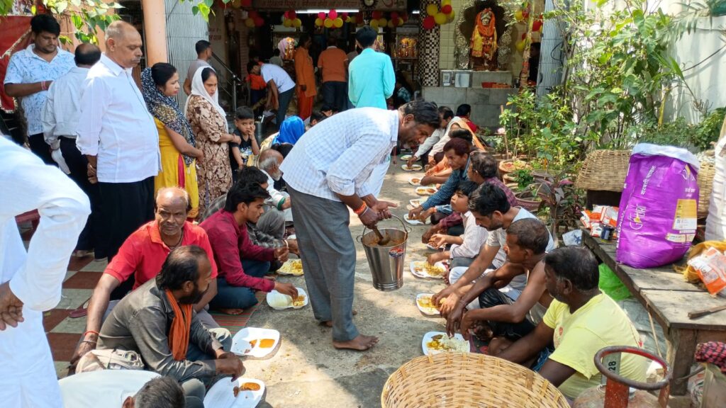 बरेली: श्री शिरडी साई खाटूश्याम सर्वदेव मंदिर, श्यामगंज, बरेली में श्रीराम नवमी के पावन अवसर पर 6 अप्रैल को भव्य धार्मिक कार्यक्रम और भंडारा का आयोजन किया गया। मंदिर के महंत पंडित सुशील पाठक ने बताया कि इस शुभ दिन पर मंदिर को लाल और पीले गुब्बारों से सजाया गया। मंदिर में विराजमान सभी देवी-देवताओं और भगवान को भगवा और पीले रंग की विशेष पोशाक पहनाई गई। सुबह की शुरुआत ठाकुर जी की मंगला आरती और साईनाथ की काकड़ आरती से हुई। इसके बाद बाबा खाटूश्याम का अद्भुत अलौकिक श्रृंगार कलकत्ता और बेंगलुरु से मंगाए गए फूलों से किया गया। गणेश, गायत्री, कलश और माता दुर्गा की पूजा के साथ हवन भी संपन्न हुआ। तत्पश्चात बाबा साईनाथ का महाभिषेक और पूजन मुख्य यजमान मनीष अग्रवाल और अंकुर अग्रवाल द्वारा कराया गया। प्रभु श्रीराम का राज तिलक कर मध्यान्ह आरती भी की गई। निर्धारित समय एक बजे से भंडारे की शुरुआत हुई, जो शाम छ बजे तक चली। इस दौरान सैकड़ों भक्तों ने प्रसाद ग्रहण किया। मंदिर से जुड़े भक्तों ने इस आयोजन में सक्रिय भूमिका निभाई, जिनमें संजय आयलानी, सुभाष पाल, सुभाष अरोरा, गौरव अरोरा, सोनू कालरा, संजय कालरा, इंद्रप्रीत सिंह, नंद किशोर देवनानी, सुधीर जयशवाल, अमित सक्सेना, आयुष अग्रवाल आदि का विशेष सहयोग रहा। इस अवसर पर वन पर्यावरण मंत्री डॉ. अरुण कुमार, महापौर डॉ. उमेश गौतम, कैंट विधायक संजीव अग्रवाल, महानगर अध्यक्ष अधीर सक्सेना, बिथरी विधायक डॉ. राघवेंद्र शर्मा, देवेंद्र जोशी, विशाल महरोत्रा और सर्वेश रस्तोगी भी मौजूद रहे। यह आयोजन भक्तों के लिए एक स्मरणीय अनुभव रहा।