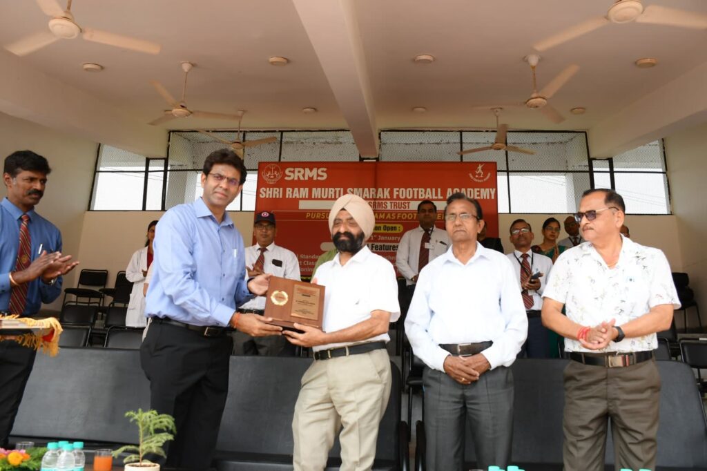 बरेली। एसआरएमएस कॉलेज ऑफ इंजीनियरिंग एंड टेक्नोलॉजी (सीईटी) में बुधवार को श्रीराम मूर्ति मेमोरियल इंटर स्कूल फुटबाल टूर्नामेंट का शानदार आगाज हुआ। बरेली फुटबॉल संघ से मान्यता प्राप्त इस टूर्नामेंट में खिलाड़ियों के बीच एसआरएमएस ट्रस्ट के सचिव आदित्य मूर्ति ने बरेली फुटबाल संघ के अध्यक्ष अमर सिंह बख्शी, सचिव मून राबिंसन और उपाध्यक्ष देवेंद्र सिंह देवलिया, टूर्नामेंट की आयोजन समिति के ऑर्गनाइजिंग सेक्रेटरी डा.सोवन मोहंती, नितिन सक्सेना, शंकरपाल के साथ टूर्नामेंट की ट्राफी का अनावरण किया। सभी ने खिलाड़ियों का परिचय हासिल कर टूर्नामेंट में खेलने वाली सभी 12 टीमों के खिलाड़ियों को बधाई दी। अमर सिंह बख्शी ने टूर्नामेंट को फुटबाल खिलाड़ियों के लिए बड़ा मंच बताया। कहा कि ऐसे टूर्नामेंट से फुटबाल की ओर भी बच्चों का रुझान बढ़ेगा और इस खेल में भी अच्छे खिलाड़ी निकल कर सामने आएंगे। आदित्य मूर्ति ने कहा कि एसआरएमएस ट्रस्ट अपनी स्थापना से ही सभी खेलों को बढ़ावा देता आ रहा है। इसीलिए यहां पर आल इंडिया टेबल टेनिस चैंपियनशिप, बैडमिंटन चैंपियनशिप, क्रिकेट चैंपियनशिप, शतरंज चैंपियनशिप और फुटबाल चैंपियनशिप आयोजित की जाती रही हैं। उम्मीद है कि श्रीराम मूर्ति मेमोरियल इंटर स्कूल फुटबाल टूर्नामेंट से भी इस खेल के प्रति खिलाड़ियों में एक सकारात्मक माहौल बनेगा और यहां से निकल कर कर खिलाड़ी प्रदेश एवं राष्ट्रीय स्तर पर भी अपने साथ बरेली का मान बढ़ाएंगे।