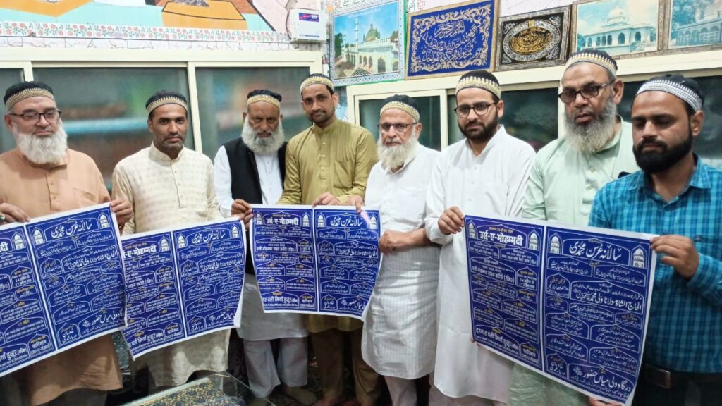 बरेली। आस्ताना ए आलिया मौहम्मदिया(दरगाह वली मियां) में पीर ए तरीकत कुतुबुलअक़ताब क़िबला अल्हाज मौलाना शाह वली मोहम्मद साहब रहमतुल्लाह अलैह (वली मियाँ) केे चार रोज़ा 35 वां उर्स ए मोहम्मदी के ताअल्लुक से प्रेस काॅफ़्रेंस हुई । प्रेस काॅफ़्रेंस में बताया गया कि कुतुबुलअक़ताब हज़रत अल्हाज अश्शाह मौलाना वली मोहम्मद साहब रहमतुल्लाह अलैह (वली मियाँ हुज़ूर) केे 24 अप्रैल से शुरू हो रहे चार रोज़ा उर्स ए मोहम्मदी में दिल्ली, मुंबई, राजस्थान, झारखंड, हैदराबाद, उत्तराखण्ड,बिहार व उत्तर प्रदेश के विभिन्न ज़िलों केे ज़ायरीन तशरीफ़ ला रहे हैं । इस बार भी पोस्टर एक साइड हिंदी और एक साइड उर्दू मतलब दो हिस्से में छपा है ताकि हर कोई आसानी से पढ़ सके । नमाज़ ईशा तरहई मुशायरा होगा और 27 अप्रैल को शाम 4.50 पर हज़रत वली मियां हुज़ूर का इख़्तेतामी कुल शरीफ़ होगा। चार रोज़ा उर्स ए मोहम्मदी की सदारत सज्जादानशीं अल्हाज अनवर मियाँ हुज़ूर और निज़ामत मौलाना हाफिज़ जानिसार अख़्तर जसपुरी की रहेगी । उर्स ए मोहम्मदी के प्रभारी इफ़्तिखार हुसैन व गिज़ाल सिद्दिकी ने बताया की ज़ायरीन के ठहरने के लिए मेहमान खानों व लंगर के लिए लंगर खानों में माकूल इंतज़ाम किये गए हैं। उर्स ए मोहम्मदी की तकरीबात इस तरह हैं- 24 अप्रैल को दिन में परचम कुशाई, रात बाद नमाज़ इशा तकारीर उलमा ए इकराम होगी, 25 अप्रैल को सुबह 4 बजे हज़रत वली मियां रहमतुल्लाह अलैह का विसाली कुल शरीफ़ और रात को उलमा ए इकराम इसलाही तकारीर करेंगे , 26 अप्रैल को बाद नमाज़ ईशा तरहई मुशायरा होगा और 27 अप्रैल को शाम 4.50 पर हज़रत वली मियां हुज़ूर का इख़्तेतामी कुल शरीफ़ होगा। चार रोज़ा उर्स ए मोहम्मदी की सदारत सज्जादानशीं अल्हाज अनवर मियाँ हुज़ूर और निज़ामत मौलाना हाफिज़ जानिसार अख़्तर जसपुरी की रहेगी । प्रेस काॅफ्रे़न्स में सय्यद नाज़िर अली(चाँद),ताहिर जमाल शमसी,हाजी आरिफ़ उल्लाह,फ़ैज़ी हक,मोहसिन ख़ान(एड.),मोहम्मद उस्मान,महताब शमसी,मोहम्मद आरिफ़,सय्यद मुझाहिद अली(डिप्टी पोस्ट वार्डन,सिविल डिफेंस),वामिक शमसी(एड.),समीर अज़ीज़, मोहसिन,शौकत इकबाल, आदि मौजूद रहे ।