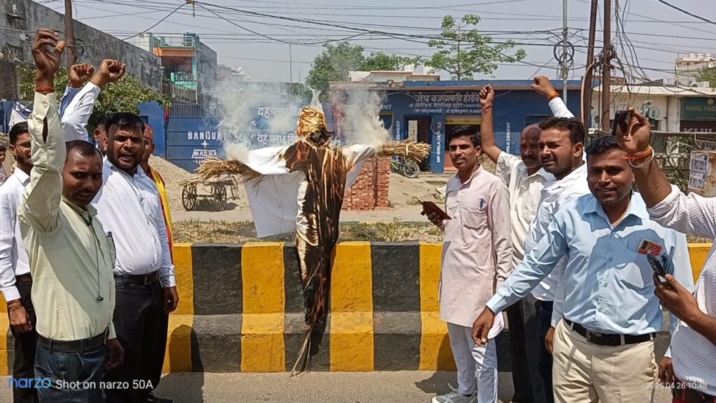 बरेली । पश्चिम बंगाल सरकार की मिली भगत से हो रहे हिंदुओं पर अत्याचार और हत्याओं के विरोध में भारतीय हिन्दू सरकार के मंडल अध्यक्ष गौरव चौहान के नेतृत्व में बदायूं रोड पर पश्चिम बंगाल के मुख्यमंत्री ममता बनर्जी का पुतला फूंका और पश्चिम बंगाल में राष्ट्रपति शासन लगाने की मांग करते हुए महामहिम राष्ट्रपति को संबोधित ज्ञापन एसीएम को दिया। गौरव चौहान ने कहा कि पश्चिम बंगाल में लगातार हो रहे हिंदुओं पर अत्याचार हत्याएं और महिलाओं के साथ अभद्रता को देखते हुए महामहिम राष्ट्रपति से मांग करते हैं कि पश्चिम बंगाल में राष्ट्रपति शासन लागू किया जाए जिससे हिंदुओं पर हो रहा है अत्याचारों को रोका जा सके इसके विरोध में पश्चिम बंगाल की मुख्यमंत्री ममता बनर्जी का पुतला फूंका है। हमारी मांग है कि बेघर हुए हिंदुओं को नया घर दिलवाया जाए एवं हिंसा के शिकार हुए हिंदुओं को 50-50 लाख मुआवजा दिलाया जाए। प्रदर्शन के दौरान सुधांशु सिंह, राजेश कुमार, विकास मौर्य, रितु देवी , उषा रानी, सीमा, रजनी,उषा, नेहा सिंह चौहान, तेजपाल राजपूत, मुकेश राजपुर , संतोष कुमार मौर्य, ब्रह्मपाल सिंह , निति चौहान , रंजीत सिंह आदि मौजूद रहे।