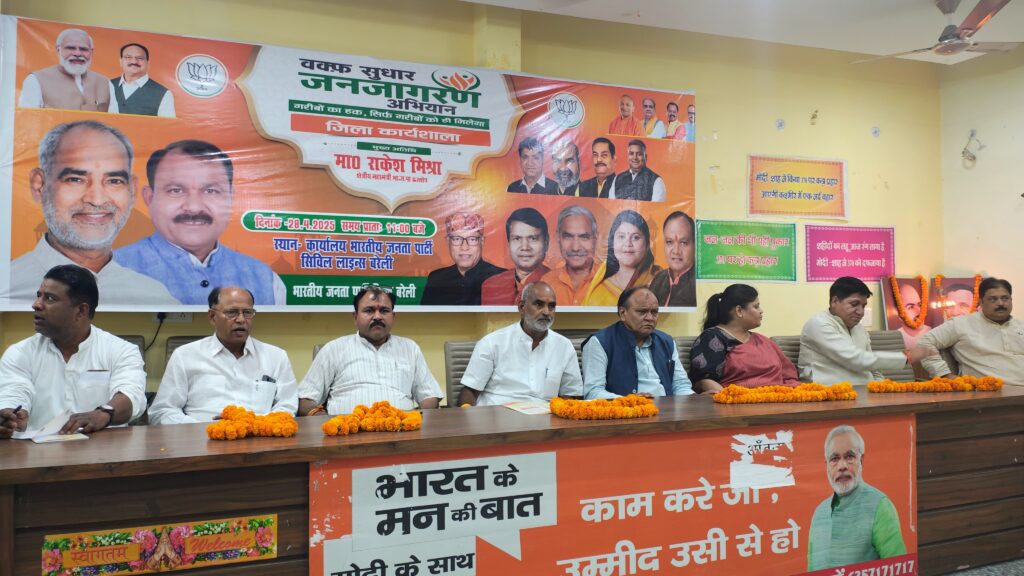 बरेली। भारतीय जनता पार्टी जिला बरेली के द्वारा वक़्फ़ सुधार जन जागरण अभियान की कार्यशाला जिला अध्य्क्ष सोमपाल शर्मा की अद्यक्षयता में सिविल लाइन्स पार्टी कार्यालय पर आयोजित की गयी। कार्यशाला में मुख्य अतिथि क्षेत्रीय महामंत्री राकेश मिश्रा रहे। कार्यशाला में अल्पसंख्यक मोर्चा के पदाधिकारी, जिला पदाधिकारी व भारी संख्या में अल्पसंख्यक समाज के लोग उपस्थित रहे। मुख्य अतिथि राकेश मिश्रा ने कहा कि वक्फ संशोधन बिल के रूप में गरीब मुस्लिम समाज को उसका हक दिलाने की दिशा में वक्फ संशोधन बिल एक ठोस कदम है। उन्होंने कहा कि पीएम नरेद्र मोदी के सबका साथ-सबका विकास वाली सोच का विस्तार हो रहा हैं। कहा कि वक्फ संशोधन बिल के रूप में गरीब मुस्लिम समाज को उसका हक दिलाने की दिशा में एक ठोस कदम उठाया गया है। भाजपा किसी भी हालत में वक्फ नामक संस्था को कमजोर नहीं करना चाहती है। बल्कि भूमाफिया के चंगुल से छुड़ाकर आम जनता को वक्फ का लाभ देना चाहती है। उन्होंने कहा कि वक्फ का अर्थ होता है समाजहित में दान की गई जमीन-जैसे कि स्कूल, मदरसे, कब्रिस्तान आदि के लिए दान की गईं संपत्ति को वक्फ कहा जाता है। देश में विभिन्न स्थानों पर वक्फ की संपत्तियों का दुरुपयोग हुआ है। हैदराबाद में ओवैसी परिवार की ओर से वक्फ की जमीन पर फाइव स्टार हाटल बना दिया गया। 2013 के वक़्फ़ अधिनियम के तहत वक्फ बोर्ड को संपत्तियों को बिना पर्याप्त जांच के वक्फ घोषित करने का अधिकार था, जिससे कई विवादस्पद मामले सामने आए। सांसद छत्रपाल सिंह गंगवार ने कहा कि यह अभियान जनता के बीच पारदर्शिता, न्याय और सबके लिए समान आधकार के सकल्प को मजबुत करन का एक महत्वपूण प्रयास है। उन्होंने कहा कि देश के यशस्वी प्रधानमंत्री नरेंद्र मोदी जी के कुशल नेतृत्व में पारित यह विधेयक वक्फ बोर्डं में मुस्लिम समुदाय के लिए न्याय और पारदर्शिता सुनिश्चित करेगा। कार्यशाला का संचालन कार्यक्रम संयोजक व जिला महामंत्री डॉ निर्भय गुर्जर ने किया। इस अवसर पर सांसद छत्रपाल सिंह गंगवार, जिला अध्य्क्ष सोमपाल शर्मा, क्षेत्रीय महामंत्री राकेश मिश्रा, विधायक डॉ एमपी आर्य, जिला पंचायत अध्य्क्ष रश्मि पटेल, नि. वर्तमान अध्य्क्ष पवन शर्मा, मेघनाथ सिंह कठेरिया, वीरपाल गंगवार, नीरेंद्र सिंह राठौर, डॉ नरेंद्र गंगवार, राहुल साहू, मीडिया प्रभारी अंकित माहेश्वरी, परवेज मिया, तारिक़ नियाजी, सुरजीत यादव, मुकेश राजपूत, देवेंद्र सक्सेना, राधेश्याम साहू आदि कार्यकर्ता उपस्थित रहे।