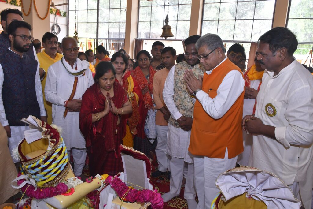 बरेली। श्री स्वामी जगन्नाथ मंदिर (मठ गद्दी तुलसीदास दास जी महाराज से सम्बंद्ध ) मे श्री राधा संकीर्तन मंडल ट्रस्ट रजि. बरेली द्वारा कराये जा रहे देवस्थापना एवं सप्त दिवसीय संकीर्तन महोत्सव के द्वितीय दिवस पर भगवान जगन्नाथ जी , बलभद्र जी बहन सुभद्रा जी का प्रातः काल मे स्नान महाभिषेक विधि विधान से तुलसी मठ के महंत नीरज नयन दास जी एवं कैंट विधायक संजीव अग्रवाल जी ने आरम्भ किया। दोपहर मे भगवान जगन्नाथ जी, बलभद्र जी, बहन सुभद्रा जी की नगर भृमण की शोभायात्रा निकली गयी जिसे उत्तर प्रदेश सरकार के वन एवं पर्यावरण राज्यमंत्री स्वतंत्र प्रभार डॉ अरुण कुमार सक्सेना जी ने आरती करके शुभारंभ किया। शोभा यात्रा श्री जगन्नाथ स्वामी मंदिर से प्रारंभ होकर आयुर्वैदिक कॉलेज, फर्नीचर मार्केट स कलापुर, नगर निगम होते हुए मंदिर पर ही विश्राम हुआ। भव्य शोभा यात्रा का जगह-जगह नाथनगर वासियों ने पुष्प वर्षा एवं भगवान जगन्नाथ जी की आरती करके स्वागत किया। शोभायात्रा में श्री राधा संकीर्तन मंडल के सदस्यों का संकीर्तन मंडल की विशेष रूप से एक झांकी रही, जिसमें राजू गुलाटी विवेक अग्रवाल, शिव चावला, दिनेश शर्मा,पंकज अग्रवाल,अनुज अग्रवाल ने अपने भजनों से सभी को झुमा दिया। शोभायात्रा जिन जिन मार्गो से निकली ऐसा लग रहा था जैसे की जगन्नाथ पुरी में ही शोभायात्रा निकल रही हो…. मंडल के महामंत्री अनुज अग्रवाल ने बताया की भगवान जगन्नाथ जी बहन सुभद्रा जी, भगवान बलभद्र जी का यह विग्रह भगवान जगन्नाथ पुरी से ही बरेली आया है… नाथनगरी बरेलीवासीयो के लिए यह बहुत सौभाग्य की बात है कि भगवान जगन्नाथ अब सभी को सिकलापुर के स्वामी जगन्नाथ मंदिर में दर्शन देंगे। कार्यक्रम मे अध्यक्ष हरीश चंद्र अग्रवाल, कोषाध्यक्ष राकेश गर्गया,विकास अग्रवाल मीडिया प्रभारी रिशुल अग्रवाल, क्षेत्रीय पार्षद जयप्रकाश राजपूत,अनूप अग्रवाल, संजीव अग्रवाल, विक्रम कपूर, अतुल अग्रवाल, उमेश, सुरेश चंद्र मिन्ना, एवं भारी संख्या में क्षेत्रवासी उपस्थित रहे।