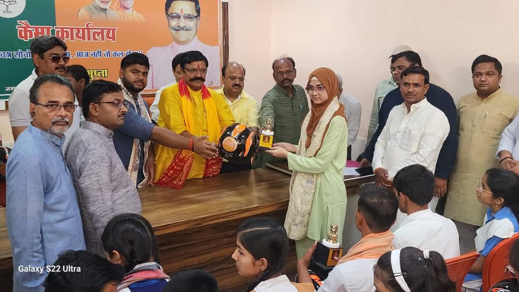 बदायूं। सदर विधायक/पूर्व राज्यमंत्री महेश चंद्र गुप्ता के आवास पर हरीबोल सेवा समिति द्वारा हाईस्कूल एव इंटर के टॉप 10 पास छात्र छत्राओं को स्मृति चिन्ह, पटका पहनाकर, हेलमेट देकर सम्मनित किया। इस अवसर पर सदर विधायक महेश चंद्र गुप्ता ने सभी को शुभकामनाएं देते हुए कहा कि आज मेधावी छात्र छात्राओं का यहां सम्मान किया जा रहा है आप लोगो को अपना अगला लक्ष्य तय करना है और आपने जो लक्ष्य बनाया है उस लक्ष्य को ध्यान में रखते हुए आपको पढ़ाई करनी है अगर आपने मन मे ठान लिया कि मुझे यह बनना है तो आप निश्चित बनोगे सदर विधायक ने कहा कि लक्ष्य न ओझल होने पाए कदम बढ़ाता चल मंजिल तेरे पग चूमेगी आज नही तो कल आपने जिले में स्थान लाकर अपने माता पिता गुरु, परिवार का नाम रोशन किया है मैं हरीबोल महाराज से आपके उज्जवल भविष्य की कामना करता हूँ आप लोग अपने लक्ष्य को अवश्य प्राप्त करे। इसके साथ साथ हमारी समिति सभी को निःशुल्क हेलमेट वितरण कर रही है आप सभी अपने परिजनों से अबस्य यह आग्रह करे कि मोटरसाइकिल चलाते समय हेलमेट आवश्य लगाए। इस अवसर पर जिला विद्यालय निरीक्षक रामप्रवेश यादव,जितेंद्र गुप्ता,अनेकपाल पटेल सुधीर श्रीवास्तव, विश्वजीत गुप्ता,हर्षवर्धन राजपूत, डॉ राजेश वर्मा सुरजीव गुप्ता राजीव सिंह गौर,अंकित मौर्य, एम पी सिंह राजपूत, अरशद अल्वी, हिमांशू कठेरिया आदि समिति के पदाधिकारियों सहित छात्र छात्राओं के माता पिता उपस्थित रहे।