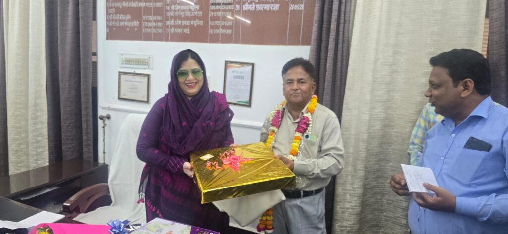 बदायूं। नगर पालिका परिषद में सेवानिवृत समारोह नगर पालिका के रज़ा हॉल में पालिका अध्यक्ष फात्मा रजा की अध्यक्षता में संपन्न हुआ। कार्यक्रम में सेवानिवृत हुए लिपिक जुनैद कौशर को 12 लाख 3 हजार 708 रुपये का भुगतान किया गया। पालिका अध्यक्ष ने फूलमाला एवं शाल देकर सम्मानित किया। इस अवसर पर पालिका अध्यक्ष फात्मा रजा ने सेवानिवृत्ति जीवन का अंत नहीं, एक नयी शुरुआत है। अपने परिवार व दोस्तों के साथ अपने अनुभवों को साझा करें। शरीर को स्वास्थ्य रखने के लिए तनावमुक्त रहें। योग का सहारा लें । हमेशा खुश रहें। समारोह में सेवाकाल में पालिका से मिले अनुभवों को एक-दूसरे से साझा किया। साथ ही पालिका की सेवा से मिले सम्मान से गौरान्वित महसूस किया। करीब 36 साल की सरकारी सेवा के बाद बुद्धवार को सेवानिवृत्त हो गए। उन्होंने कहा कि मेरे कार्य कार्यकाल सेवानिवृत कर्मचारियों का पूर्ण भुगतान किया जाएगा। इस अवसर पर मुख्य सफाई एवं खाद्य निरीक्षक मोहम्मद तय्यब, कार्यालय अधीक्षक खालिद अली, निर्माण लिपिक सचिन सवसेना, नवैद इकबाल गनी, सूर्य प्रकाश सक्सेना, रजनेश चन्द्र, शरीफ अहमद, लवी, राजेन्द्र सिंह, विनोद सोनकर, सुमित सिंह, महेश बाबू, इमरान, गजेन्द्र आदि मौजूद रहे।