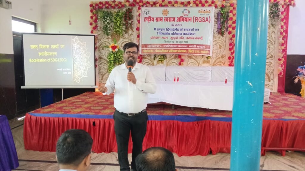 बदायूं। मण्डलीय पंचायतीराज विभाग द्वारा पंचायत विकास सूचकांक विषय पर दो दिवसीय कार्यशाला का आयोजन गुडड्ढों लोन में आयोजित किया गया। प्रशिक्षण में 10 लाइन डिपार्टमेंट के ब्लॉक स्तरीय अधिकारियों ने प्रतिभाग किया प्रशिक्षण में जिला पंचायत राज अधिकारी यावर अब्बास ने दीप प्रवजलन कर कार्यशाला का शुभारंभ किया। प्रशिक्षण में जिला पंचायत रिसोर्स सेंटर अमरोहा से सतेन्द्र शर्मा ने उपस्थित खंड स्तरीय अधिकारियों को सतत विकास लक्षय एवं स्थानीय सतत विकास लक्षय प्राप्ति की विशेष जानकारी दी गई। श्री शर्मा ने कहा कि 17 सतत विकास लक्ष्यों की प्राप्ति हेतु ग्राम पंचायतें अग्रसर है। ग्राम पंचायत सतत विकास लक्ष्यों की प्राप्ति हेतु कार्य कर रही है जिससे कि निर्धारित वैश्विक लक्ष्य को वर्ष 2030 तक प्राप्त किया जा सके । राज्य प्रशिक्षक अशोक तोमर ने पंचायत विकास सूचकांक विषय पर विस्तृत जानकारी प्रदान की श्री तोमर ने कहा कि पंचायत विकास सूचकांक द्वारा अब पंचायत पुरस्कार दिए जाते हैं
