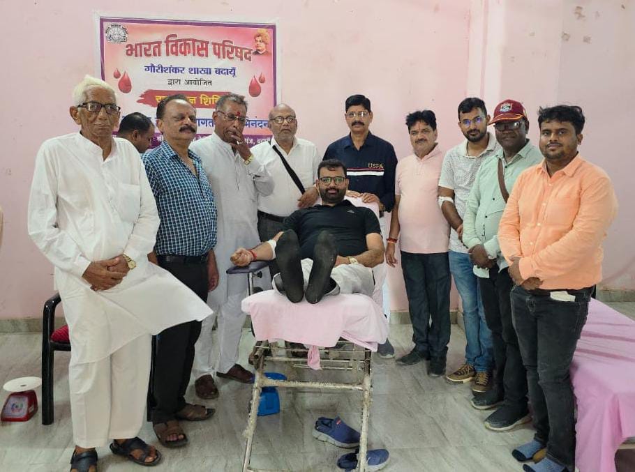 बदायूं। भारत विकास परिषद के स्थापना दिवस पर जनपद की गौरीशंकर शाखा बदायूं एवं श्री मंगला माता शाखा वजीरगंज की ओर से जिला पुरुष अस्पताल में रक्तदान शिविर का आयोजन कराया गया जिसमें लोगों ने बढ़ चढ़कर रक्तदान किया। इस अवसर पर प्रांतीय संयोजक सेवा अजय सक्सेना ने बताया कि रक्तदान से बढ़कर कोई पुण्य का कार्य नहीं है। हमें समय- समय पर रक्तदान करते रहना चाहिए। शाखा अध्यक्ष वीरेश वार्ष्णेय ने बताया कि रक्तदान शिविर का मुख्य उद्देश्य जरूरतमंद मरीजों की मदद करना है। एक रक्तदान किसी की जान बचा सकता है।