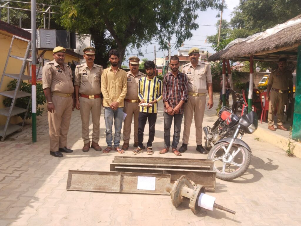 बरेली। थाना भुता पुलिस द्वारा अपराध नियंत्रण हेतु चलाए जा रहे अभियान के अंतर्गत तीन शातिर चोरों को नहर पटरी, ग्राम नगीरामपुर के पास से गिरफ्तार किया गया। अभियुक्तगण के कब्जे से एक अवैध तमंचा 315 बोर, दो जिंदा कारतूस, चोरी के सात फरमा, एक पम्पिंग सेट तथा घटना में प्रयुक्त एक मोटरसाइकिल बरामद की गई है। गिरफ्तार अभियुक्त रविन्द्र पुत्र चन्द्रपाल निवासी ग्राम सहजनपुर हेतराम, थाना भुता, अर्जुन पुत्र भारत सिंह निवासी ग्राम खजुरिया सम्पत, थाना भुता, शानु पुत्र सुरेश निवासी ग्राम सहजनपुर हेतराम, थाना भुता को गिरफ्तार किया। उपनिरीक्षक चैनू राम राणा व टीम को मुखबिर द्वारा सूचना मिली कि तीन संदिग्ध व्यक्ति चोरी का माल लेकर नहर पटरी, नगीरामपुर की ओर जा रहे हैं। सूचना पर विश्वास करते हुए पुलिस टीम द्वारा तत्परता से घेराबंदी कर अभियुक्तगण को मौके पर ही गिरफ्तार किया गया। पूछताछ में अभियुक्तों ने पूर्व में भी कई चोरी की घटनाओं को अंजाम देना स्वीकार किया है। अभियुक्त रविन्द्र पूर्व में भी जेल जा चुका है। गिरफ्तारी करने वाली पुलिस टीम में उनि चैनू राम राणा , उनि भाव प्रकाश, हेका संजीव कुमार , कांस्टेबल मोहित कुमार , रोहित कुमार , निर्भय कुमार मौजूद थे।