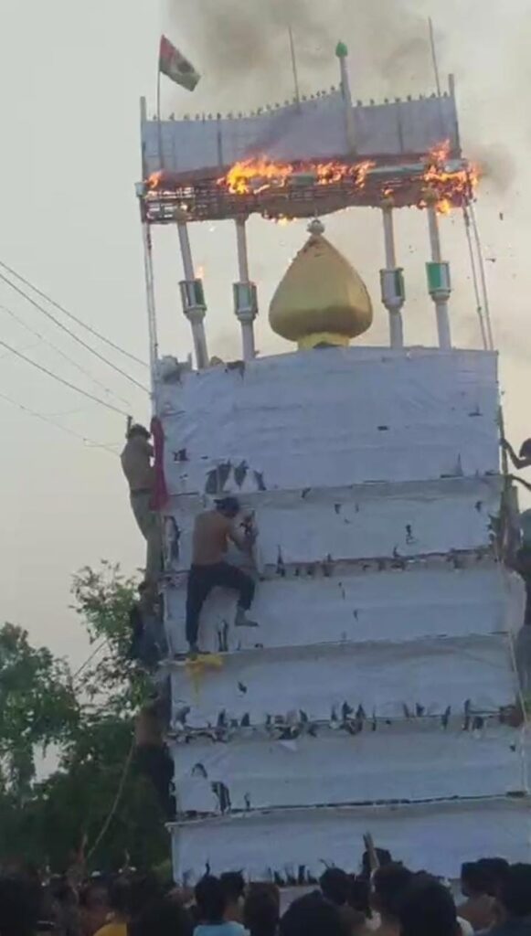 बरेली। फरीदपुर क्षेत्र में मोहर्रम के मौके पर जिले भर में शांति व्यवस्था और सुरक्षा सुनिश्चित करने के लिए पुलिस प्रशासन ने ताजियेदारों के सत्यापन का जिम्मा उपनिरीक्षकों को सौंपा था। लेकिन थाना फरीदपुर क्षेत्र के ग्राम गौसगंज में यह कवायद मज़ाक बनकर रह गई। यहां ताजिये की वास्तविक ऊंचाई 25 फीट थी, जबकि सत्यापन रिपोर्ट में इसे सिर्फ 10 फीट दिखाया गया। इसी झूठी रिपोर्टिंग का खामियाजा तब भुगतना पड़ा, जब ताजिया जुलूस के दौरान 25 फीट ऊंचा ताजिया हाई टेंशन तार से टकरा गया और देखते ही देखते आग की लपटों में घिर गया। मौके पर अफरातफरी मच गई। भीड़ में भगदड़ की स्थिति बनते-बनते बची। आग से ताजिया की झोपड़ी भी चपेट में आ गई, जिसे तुरंत हटाकर किसी तरह स्थिति संभाली गई। इसके बाद ताजिया को गौसगंज सराय से हाईवे के रास्ते कर्बला तक ले जाकर दफन किया गया, लेकिन इस घटना ने समुदाय में तनाव का माहौल खड़ा कर दिया। जांच में स्पष्ट हुआ कि उपनिरीक्षक अशोक कुमार ने सत्यापन प्रपत्र में ताजिया की ऊंचाई जानबूझकर कम दर्शाई थी। इस घोर लापरवाही के चलते न सुरक्षा के उचित इंतजाम हो सके और न ही बिजली के तारों से बचाव की कोई योजना नहीं बनाई जा सकी। वरिष्ठ पुलिस अधीक्षक बरेली अनुराग आर्य ने मामले को गंभीरता से लेते हुए उपनिरीक्षक अशोक कुमार को तत्काल प्रभाव से निलंबित कर दिया है। स्थानीय लोगों का कहना है कि मोहर्रम जैसे संवेदनशील अवसर पर ऐसी चूक बड़े हादसे को जन्म दे सकती थी। प्रशासन की इस लापरवाही ने पुलिस की कार्यप्रणाली पर एक बार फिर सवाल खड़े कर दिए हैं। वरिष्ठ अधिकारियों ने भरोसा दिलाया है कि दोषियों पर कड़ी कार्रवाई की जाएगी और भविष्य में ऐसी घटना रोकने के लिए सख्त कदम उठाए जाएंगे।