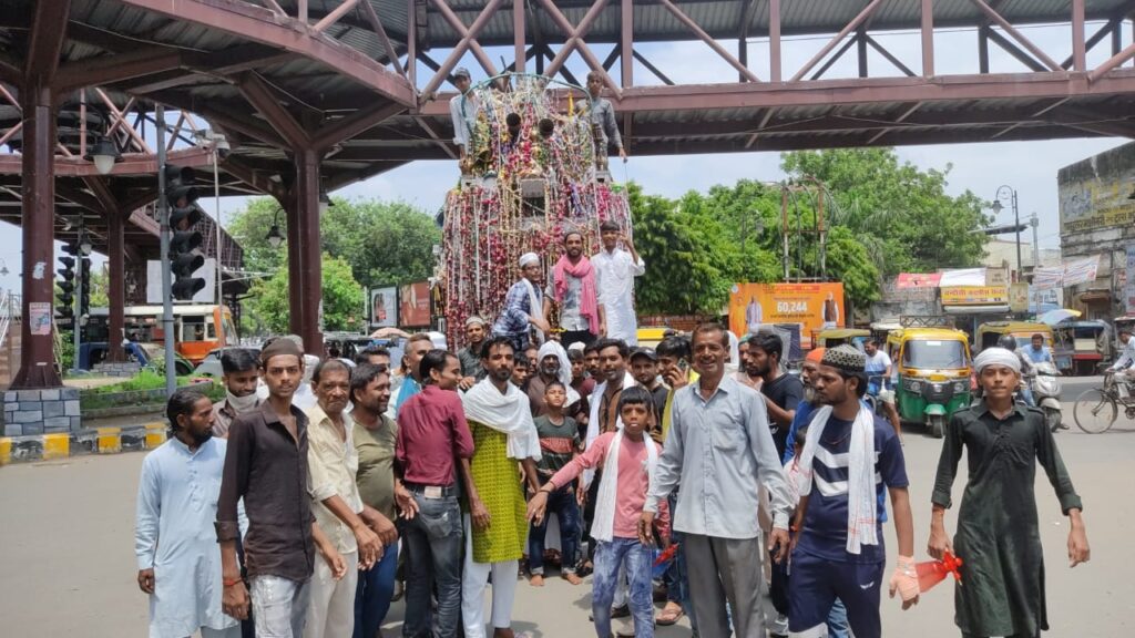 बरेली। शहर में मोहर्रम के अवसर पर अकीदतमंदों द्वारा भारी संख्या में जुलूस निकाला गया। विभिन्न इलाकों से उठे जुलूसों का समापन किला क्षेत्र स्थित बाकरगंज कर्बला पर हुआ। ख़ास तौर पर खानकाहे नियाजिया से निकला मोहर्रम का जुलूस परंपरागत तरीके से गगनभेदी नारों और मातमी धुनों के बीच रवाना हुआ, जिसमें सैकड़ों अकीदतमंद शामिल रहे। जुलूस के मार्ग में जगह-जगह सबीलें लगाई गई थीं और लोगों ने शरबत, पानी व चाय वितरण कर सेवा भाव दिखाया। पुलिस-प्रशासन द्वारा सुरक्षा के पुख़्ता इंतज़ाम किए गए थे। ड्रोन कैमरों और CCTV की मदद से निगरानी रखी गई, वहीं पुलिस बल जुलूस के साथ-साथ मुस्तैद रहा। समाज के विभिन्न वर्गों से आपसी सौहार्द और भाईचारे की मिसाल पेश करते हुए शांति और व्यवस्था बनाए रखने में सहयोग किया गया।