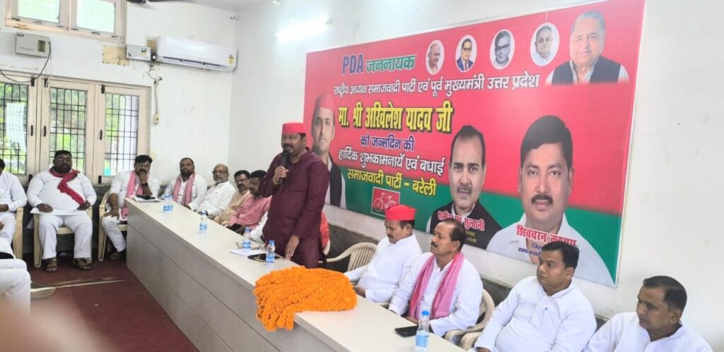 बरेली। जिलाध्यक्ष शिवचरन कश्यप ने मीटिंग की अध्यक्षता करते हुए कहा “बूथ जीतेंगे तो 2027 में सरकार बनाएंगे। समाजवादी पार्टी का हर कार्यकर्ता आज पीडीए की सोच के साथ गाँव-गाँव, गली-गली तक पहुंच रहा है।और पीडीए की जनता सत्ता परिवर्तन करने को तैयार है। महानगर अध्यक्ष शमीम खां सुल्तानी ने कहा” जनता मंहगाई, बेरोज़गारी और बदहाल सफाई व्यवस्था से त्रस्त है। समाजवादी कार्यकर्ता हर वार्ड में जनसमस्याओं को लेकर संघर्षरत हैं। बूथ स्तर पर जनता का विश्वास समाजवादी विचारधारा की ओर लौट रहा है।” पूर्व विधायक विजयपाल सिंह ने कहा”आज उत्तर प्रदेश में किसान ठगा गया है, नौजवान ठहरा हुआ है और व्यापारी डरा हुआ है। समाजवादी पार्टी 2027 में अखिलेश यादव जी को मुख्यमंत्री बनाने का संकल्प लेकर चल रहा है बैठक का संचालन जिला कोषाध्यक्ष अशोक यादव ने किया और नवनियुक्त जिला उपाध्यक्ष राजकुमार पाल,मो मुस्ताक अहमद को जोरदार स्वागत हुआ सभी ने बधाई दी बैठक में अखलाक अहमद, राजेश अग्रवाल, जिला उपाध्यक्ष बृजेंद्र यादव,समर्थ मिश्रा,नदीम अली,मनोहर पटेल,दिनेश यादव,सुरेंद्र सोनकर, दीपक शर्मा,हैदर अली,ब्रजेश श्रीवास्तव सविता,भारती चौहान,सूरज यादव,राजेश मौर्य,द्रोण कश्यप,आदि लोगों ने अपने विचार रखे। सुरेंद्र यादव, जितेंद्र मुंडे,राम सेवक प्रजापति,अलीम सुल्तानी, गुलबशर खान,मुकेश मिश्रा,सुरेश गंगवार,रोहित राजपूत,ऋषि यादव शरद यादव,खालिद राना,राजेश यादव,मुकेश पांडे,राकेश यादव,संजीव कश्यप,संदीप मौर्य,मोहित भारद्वाज,मो एजाज़ मद,अविनाश मिश्रा,श्यामवीर सिंह, गुर्जर, इं. सतेंद्र यादव,रश्मि हाशमी,मो बासिम, डॉ सफ़ीकुद्दीन, काशीराम भारती,राजवीर यादव,चमन सिंह ,छेदलाल दिवाकर, छत्रपाल यादव अखिलेश पटेल,अब्दुल जब्बर,नाजिम कुरैशी, इस्तियाक सकलेनी,यशवंत सिंह यादव आदि लोग मौजूद रहे।
